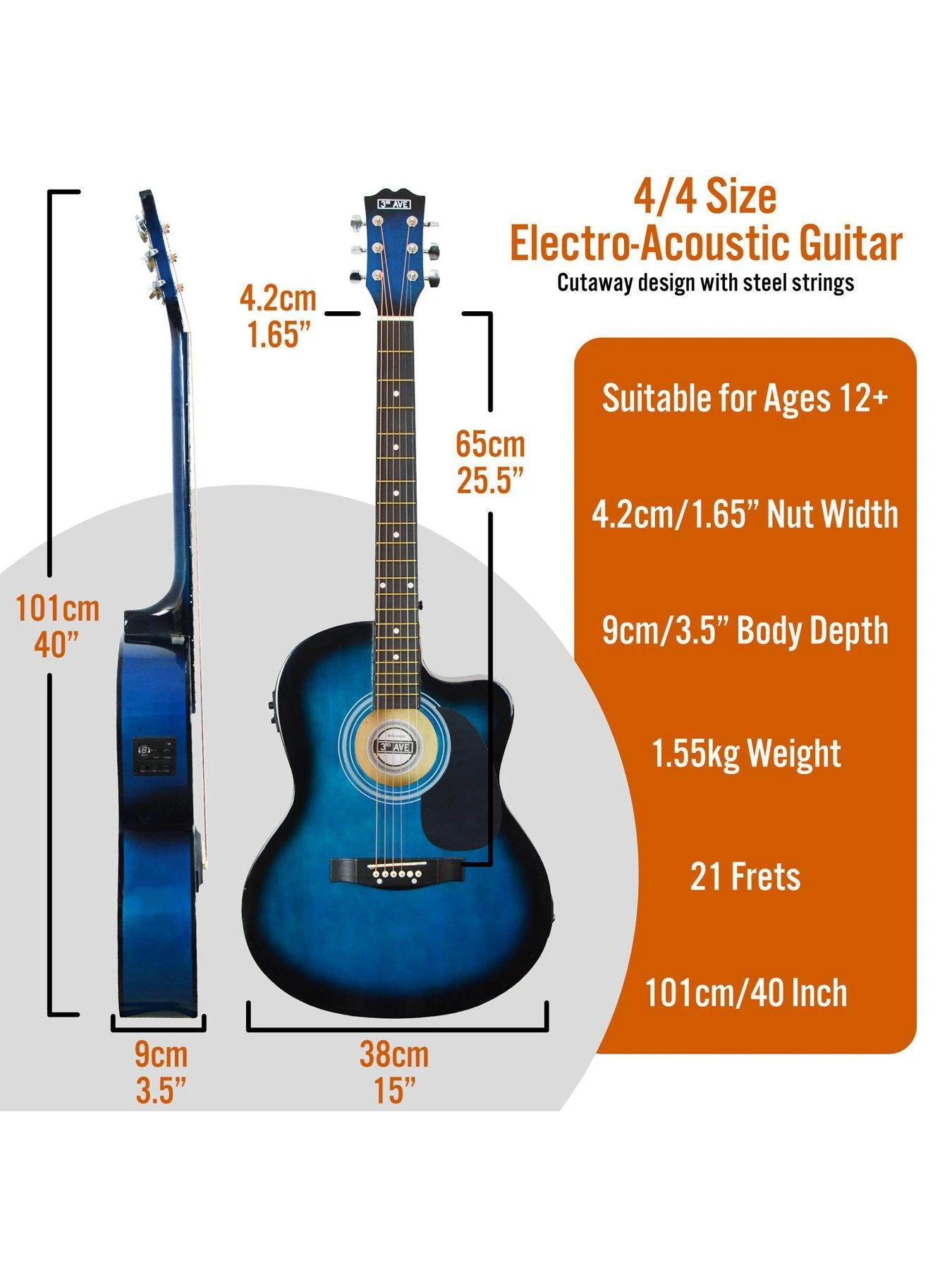 3rd Avenue Cutaway Electro Acoustic Guitar Pack – Blueburst