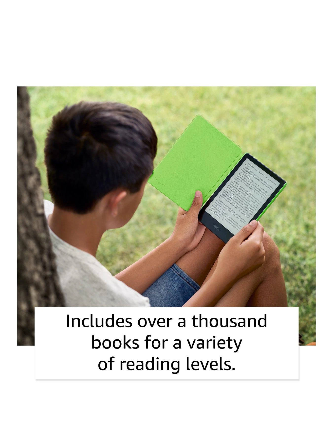 Great value: includes a Kindle Paperwhite (11th generation), 1 year of Amazon Kids+ with over 1000 children’s books, and a child-friendly cover – with a value of up to ????263.98*. Reading done right: Kindle Paperwhite Kids is purpose-built for reading, with a black & white 6.8″ 300 ppi glare-free display and up to 10 weeks of battery life. Includes over a thousand books and Audible books: with 1-year of Amazon Kids+. No distractions: Kindle Paperwhite Kids is designed for reading-no apps, videos or games. It also offers OpenDyslexic, a font preferred by some readers with dyslexia. Waterproof (IPX8) and worry free: children can take their Kindle Paperwhite Kids to read by the pool or on the beach. Kindle Paperwhite Kids has been tested to withstand accidental immersion in water. With a 2-year worry-free guarantee, if it breaks, return it and we’ll replace it for free. Anytime reading: adjustable warm light lets children read indoors and outdoors, day and night. Tools for readers: Kindle Paperwhite Kids includes Vocabulary Builder and Word Wise to help young readers build their skills.