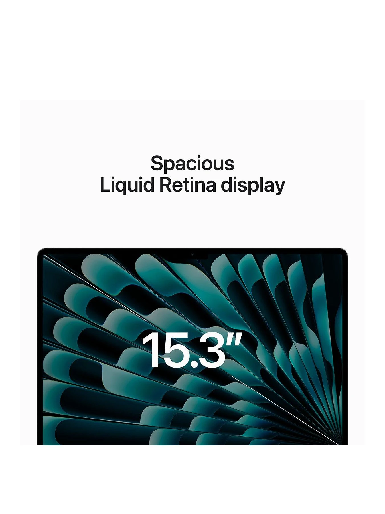 Additional information:1Battery life varies by use and configuration. See apple.com/batteries for more information. 2Compared with previous generation. 3The display on the 15-inch MacBook Air has rounded corners at the top. When measured as a standard rectangular shape, the screen is 15.3 inches diagonally (actual viewable area is less). 4Requires iCloud and internet connection.