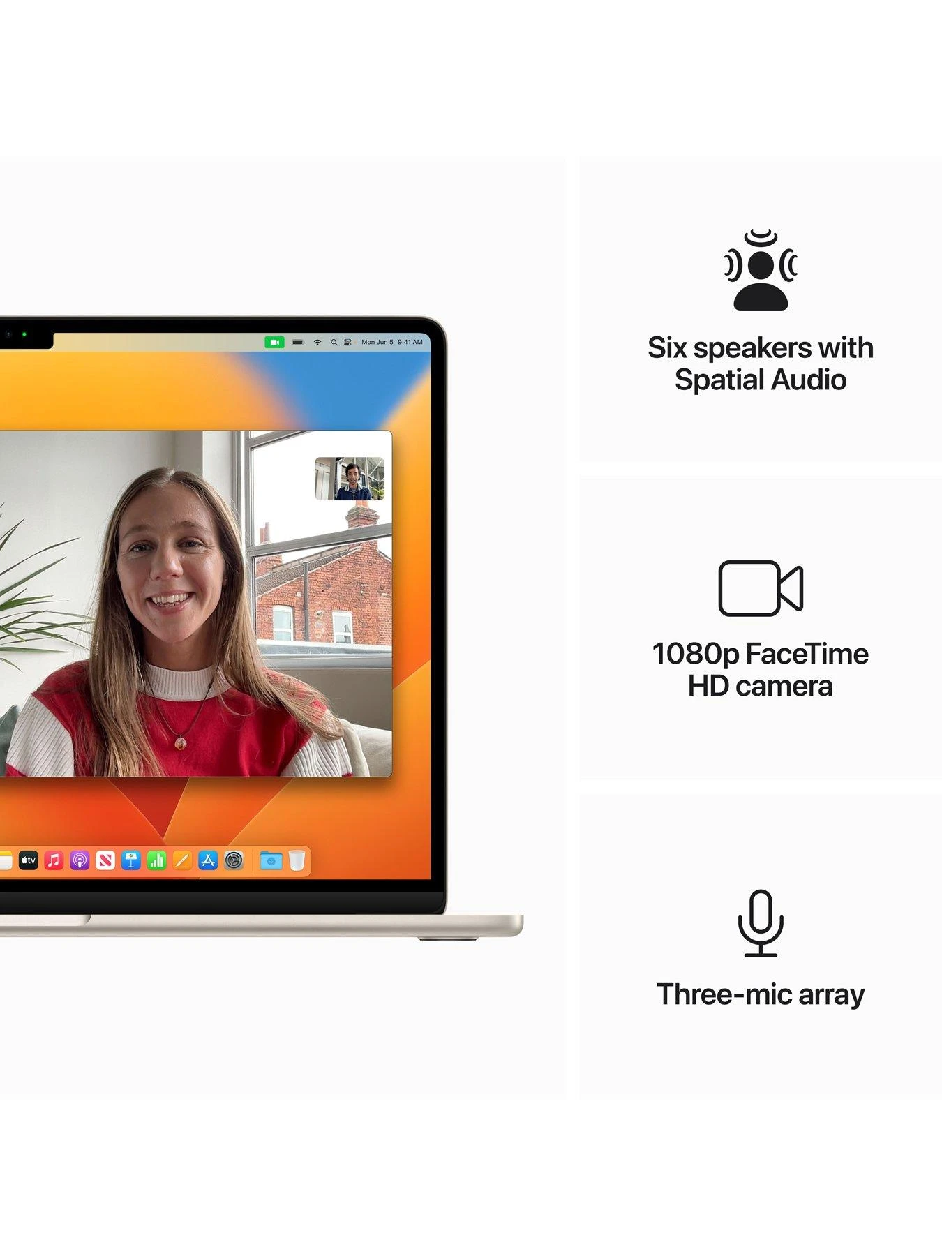Additional information:1Battery life varies by use and configuration. See apple.com/batteries for more information. 2Compared with previous generation. 3The display on the 15-inch MacBook Air has rounded corners at the top. When measured as a standard rectangular shape, the screen is 15.3 inches diagonally (actual viewable area is less). 4Requires iCloud and internet connection.