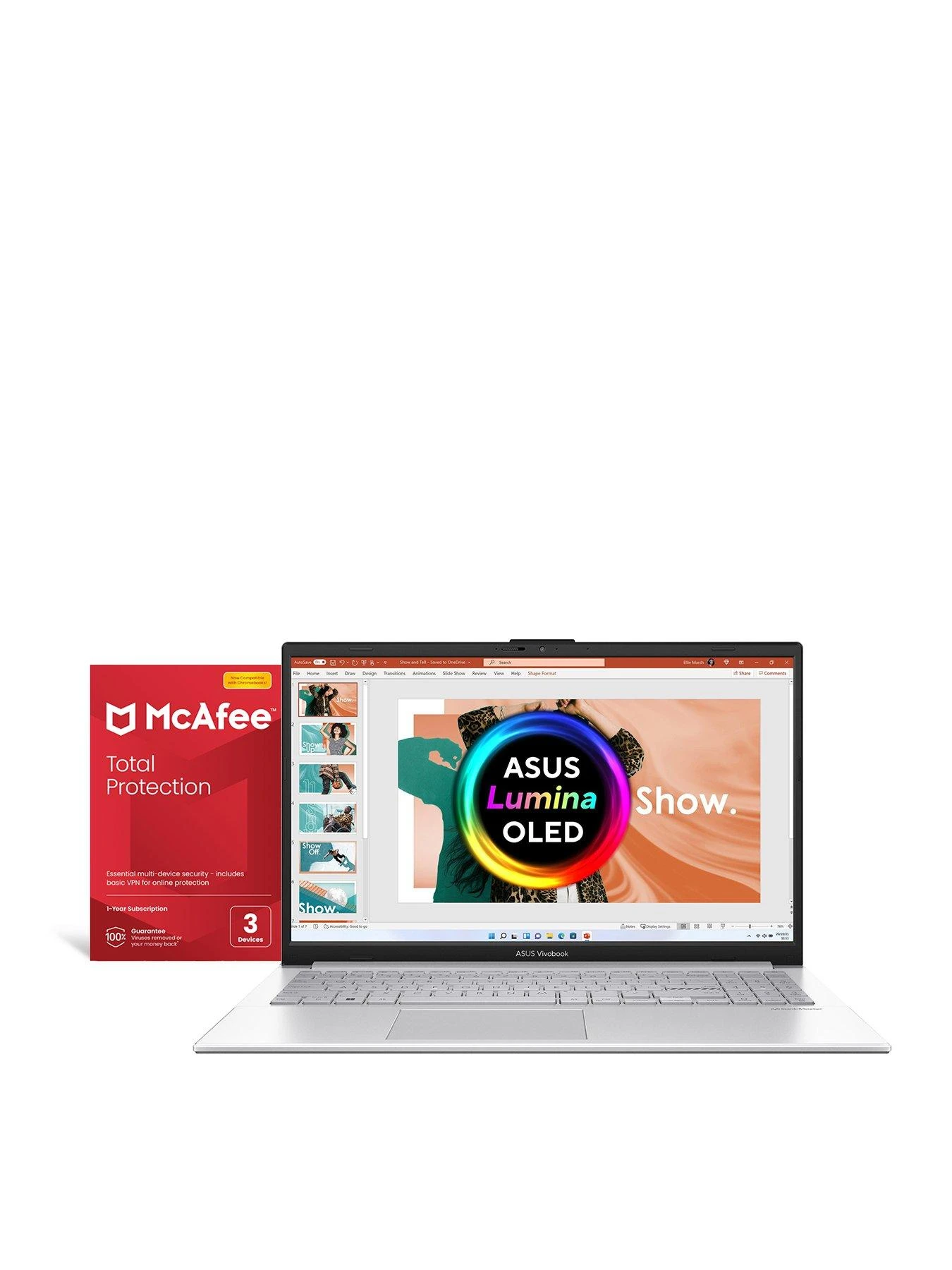 Asus Vivobook Go E1504GA-L1248W OLED 15.6in Laptop, Intel Core i3, 8GB RAM 256GB SSD, Silver with McAfee Total Protection 3 Device Included