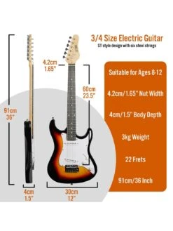 3rd Avenue 3/4 Size Electric Guitar Ultimate Kit With 10W Amp – 6 Months FREE Lessons – Sunburst