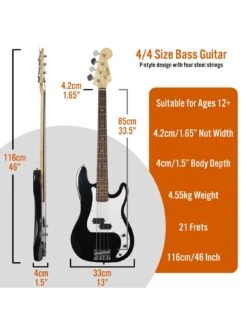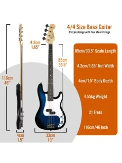 3rd Avenue Full Size Bass Guitar Ultimate Kit With 15W Amp – 6 Months FREE Lessons – Blueburst