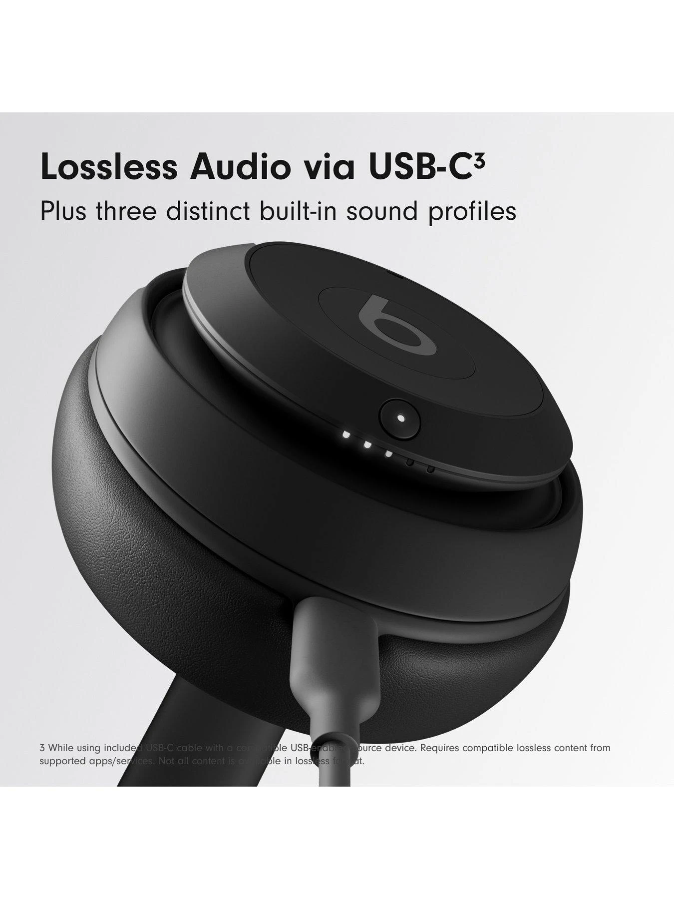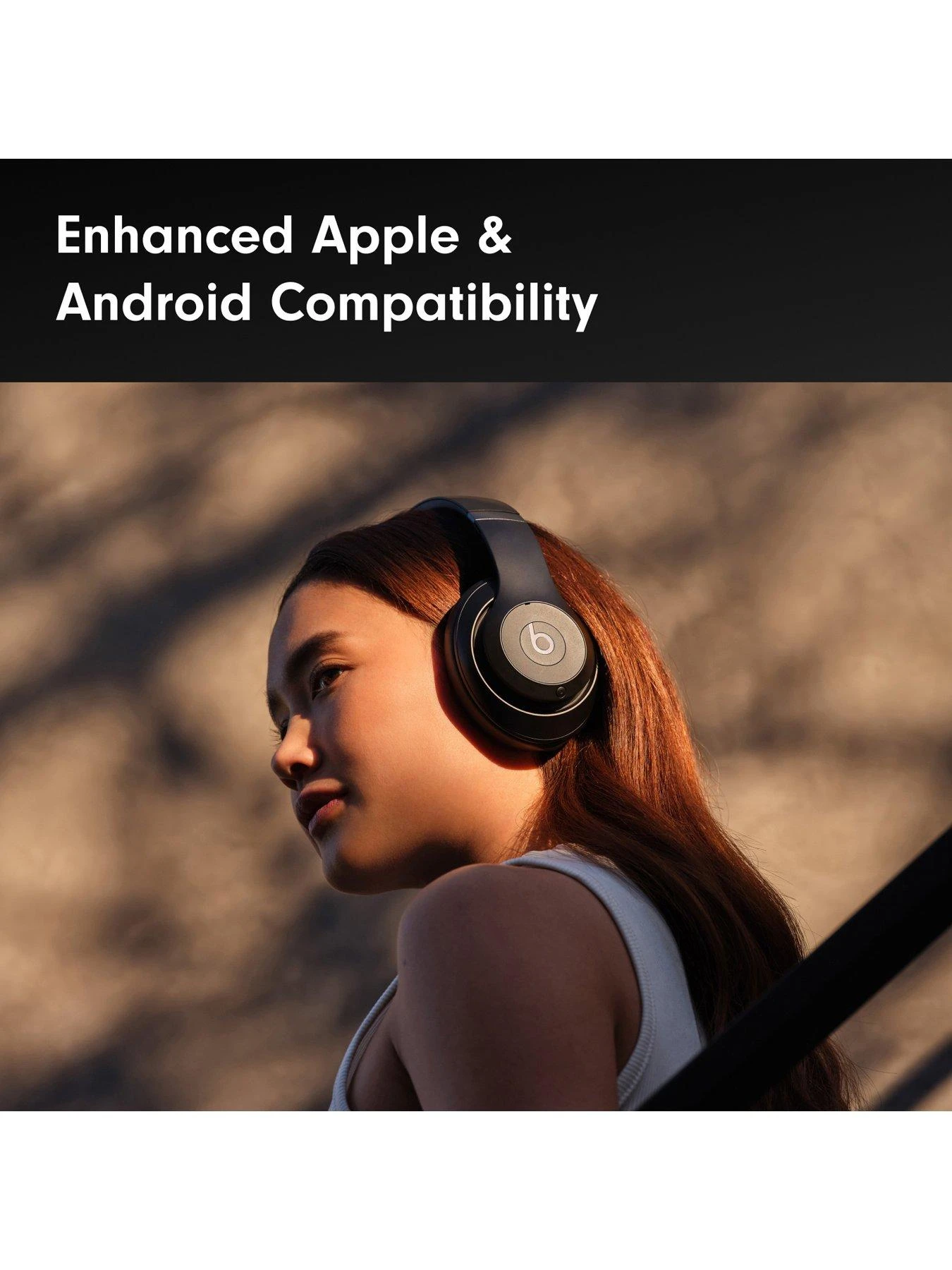 1. Not all content is available in lossless format. 2. Testing conducted by Apple in May 2023 using pre-production Beats Studio Pro units paired with iPhone 13 units. Volume was set to 50% and ANC and Transparency were turned off. Battery life depends on device settings, environment and usage 3. Requires an iCloud account and a compatible Apple device running the latest IOS software or a compatible Android device running Android 8.0 or later, with Google Play Services enabled.