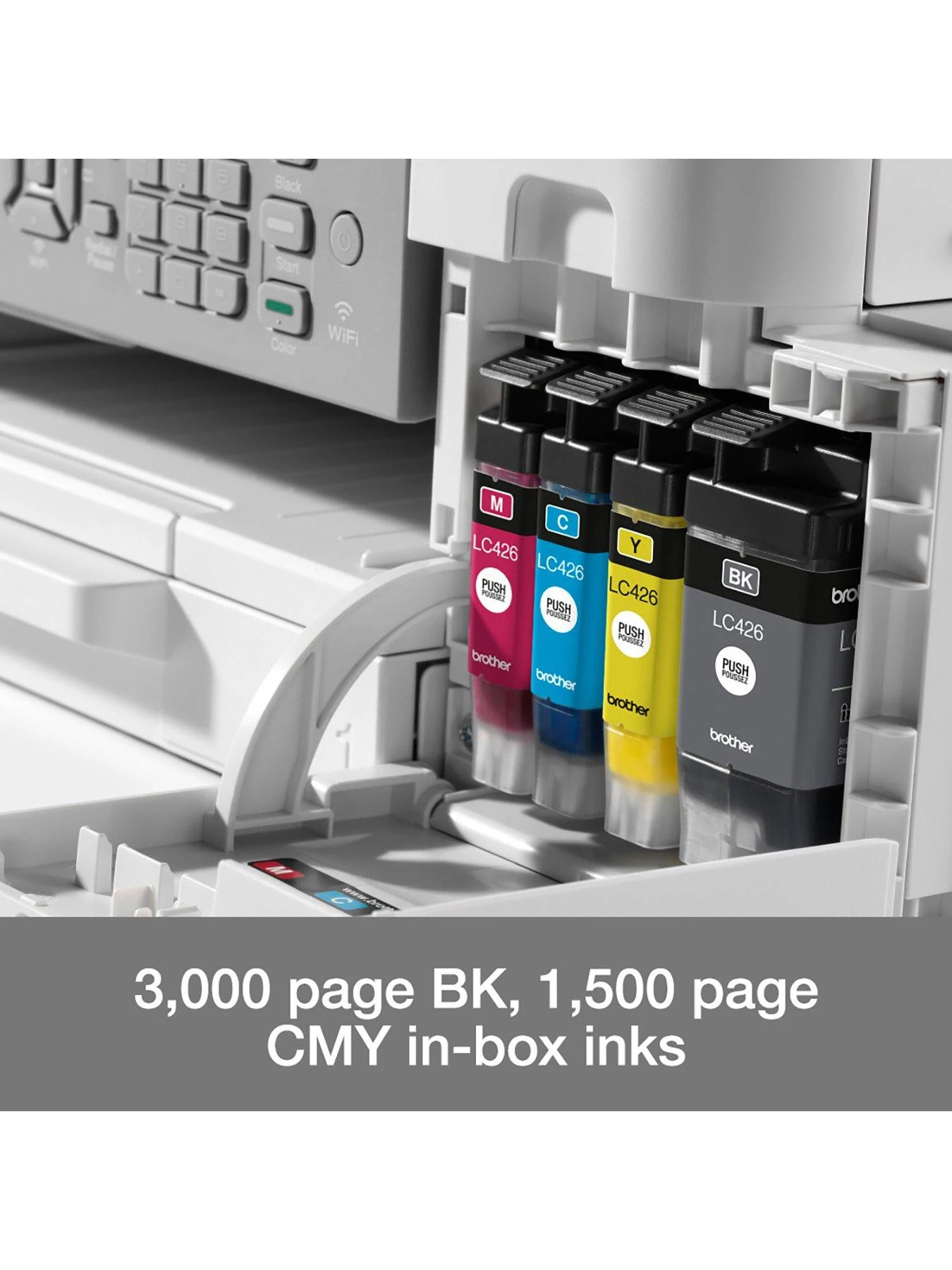 The Brother MFC-J4340DW is a powerful device offering high quality print, copy, scan and fax functionality. Enjoy a range of connectivity options for increased productivity with the 20 sheet automatic document feeder. Print more without interruption with in-box inks that print up to 3,000 pages. Combining a truly multifunctional device and a compact, robust built shell – it really is the perfect home office business partner.