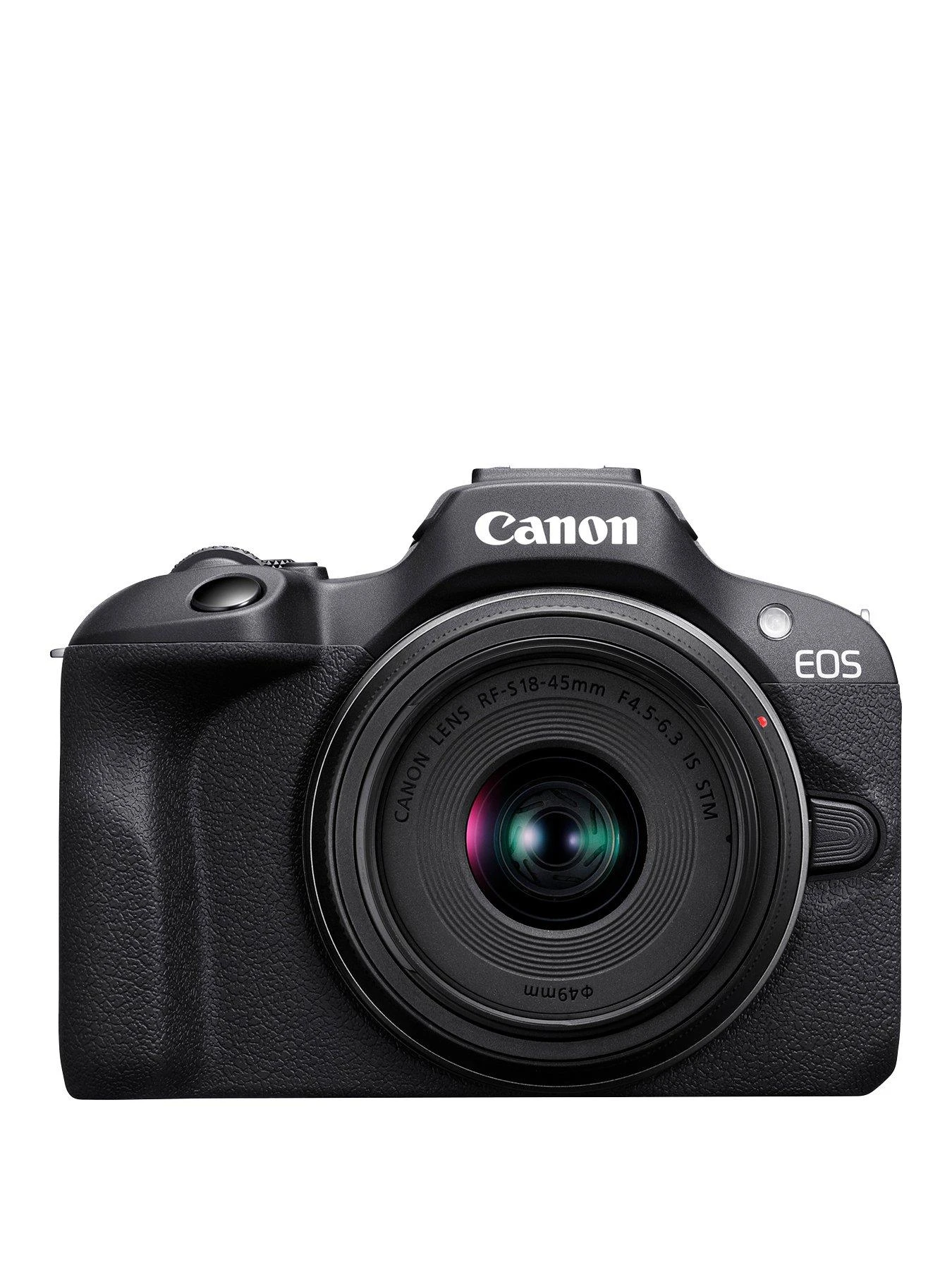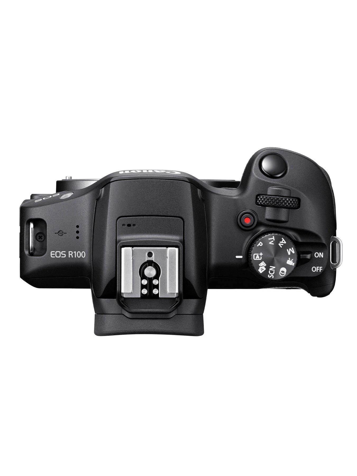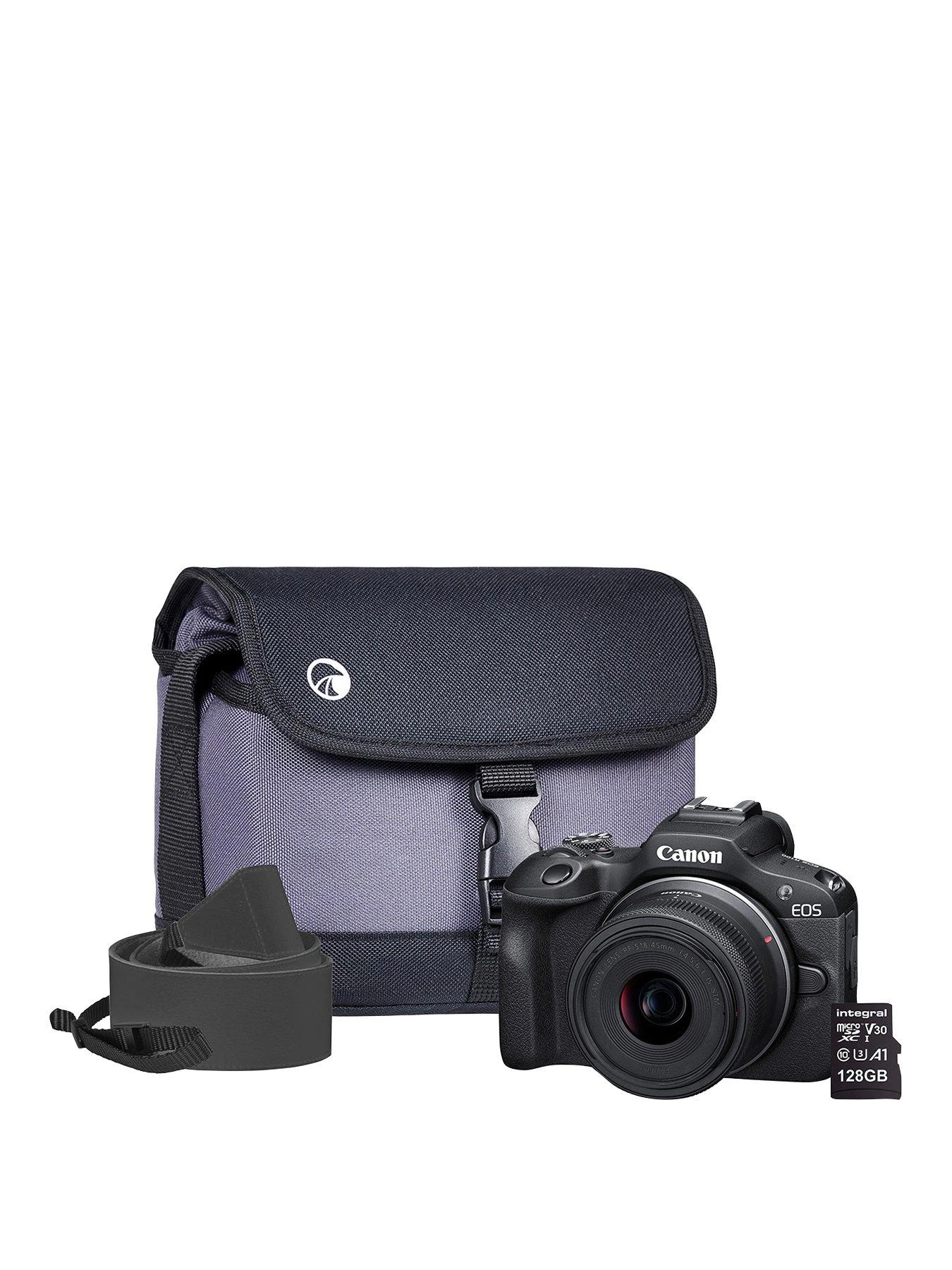 Canon EOS R100 APS-C Mirrorless Camera Kit inc RF-S 18-45mm Lens, 128GB SD Card, Neck Strap and Case – Black