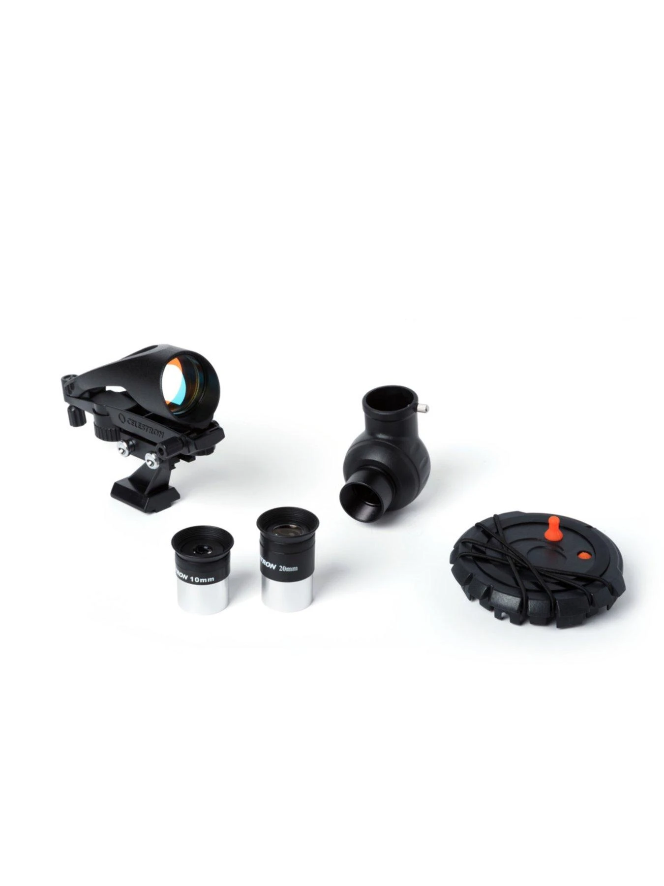 The Inspire 70 offers extremely easy setup in under 10 minutes. With the folding accessory tray you just pop the tripod legs open, turn the lock knob, attach the telescope on the quick release dovetail mount and you’re ready to go. The main telescope lens cap comes with a fully integrated smartphone adapter built-in, perfect for the budding astrophotographer. The asymmetrical mount design offers light weight and incredible stability, and a red LED flashlight is stowed in the center of the mount head, which can be removed for use as a spotlight