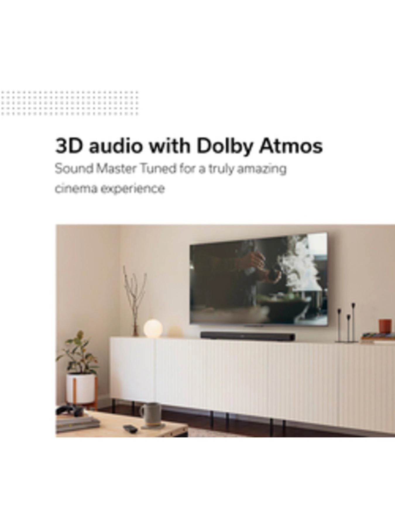 - Dolby Atmos delivers spectacular, 3D audio for the perfect cinema experience. Enjoy enhanced bass, crystal-clear dialogue, and enveloping sound.