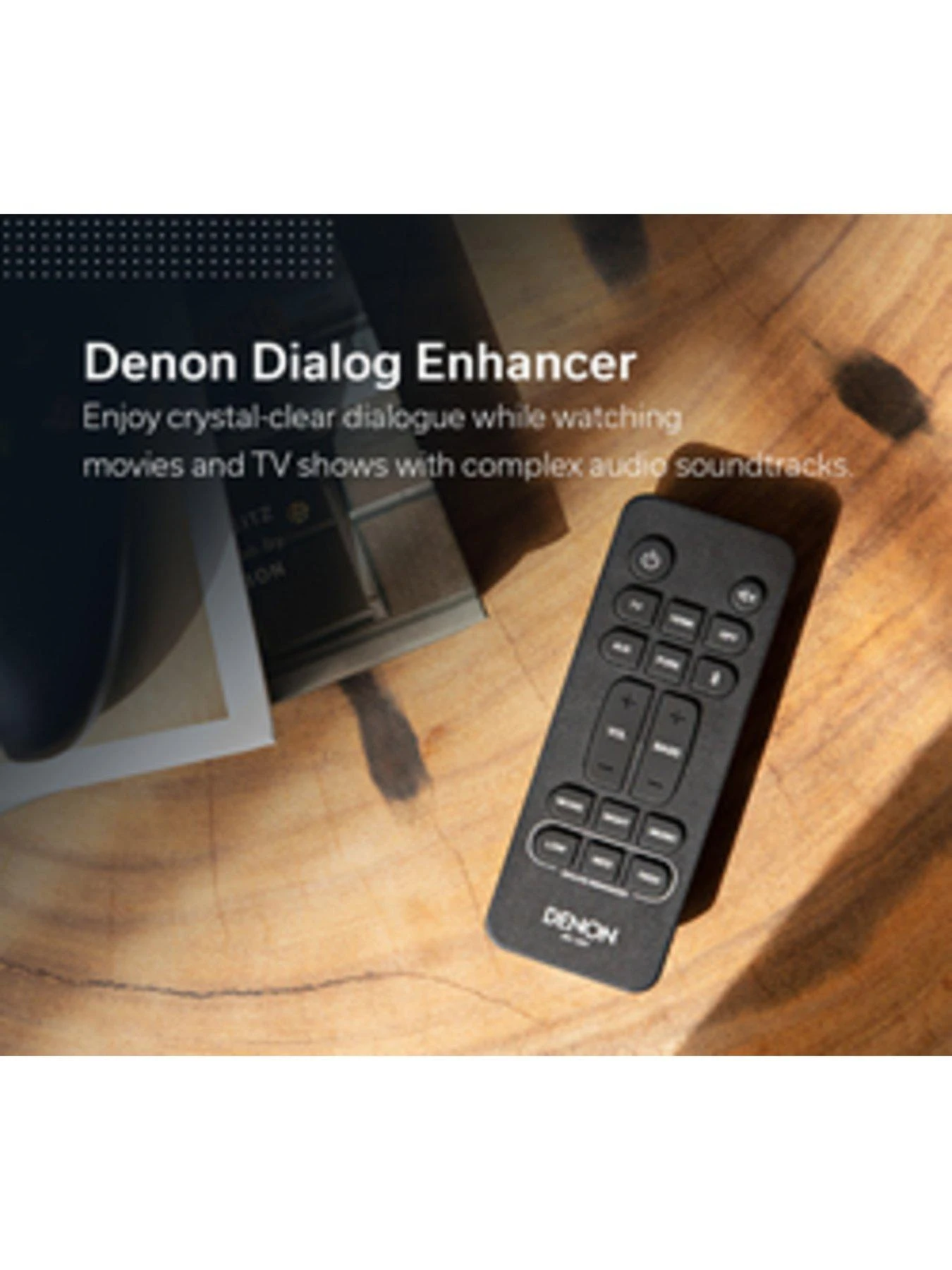 - Denon Dialog Enhancer improves dialogue clarity with three different modess. Turn up the dialogue without having to adjust the overall volume.