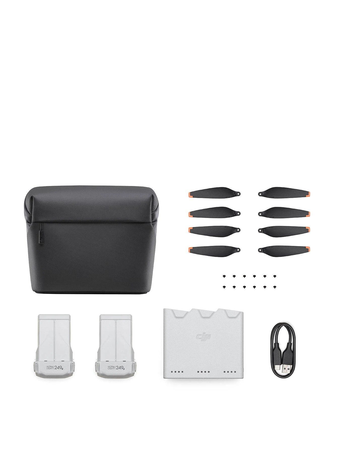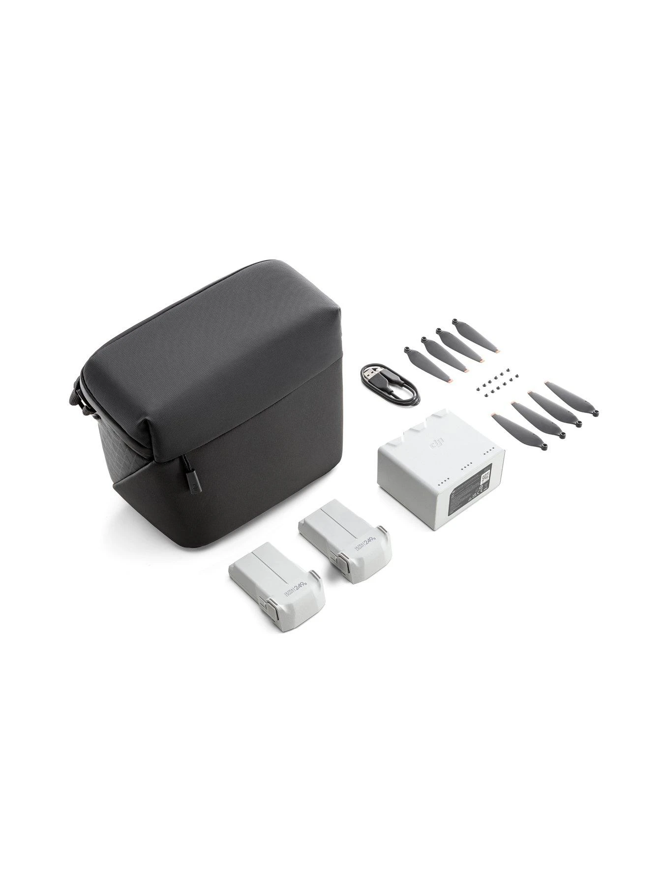DJI Mini 3 Pro Fly More Kit includes two Intelligent Flight Batteries, a Two-Way Charging Hub, data cable, shoulder bag, spare propellers, and screws, providing comprehensive support for your aerial photography experience, at a better price than buying separately.