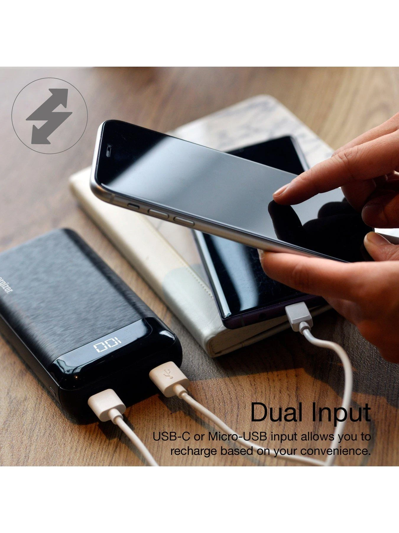 The dual input design gives you the option of recharging via Micro-USB or USB-C based on your convenience.