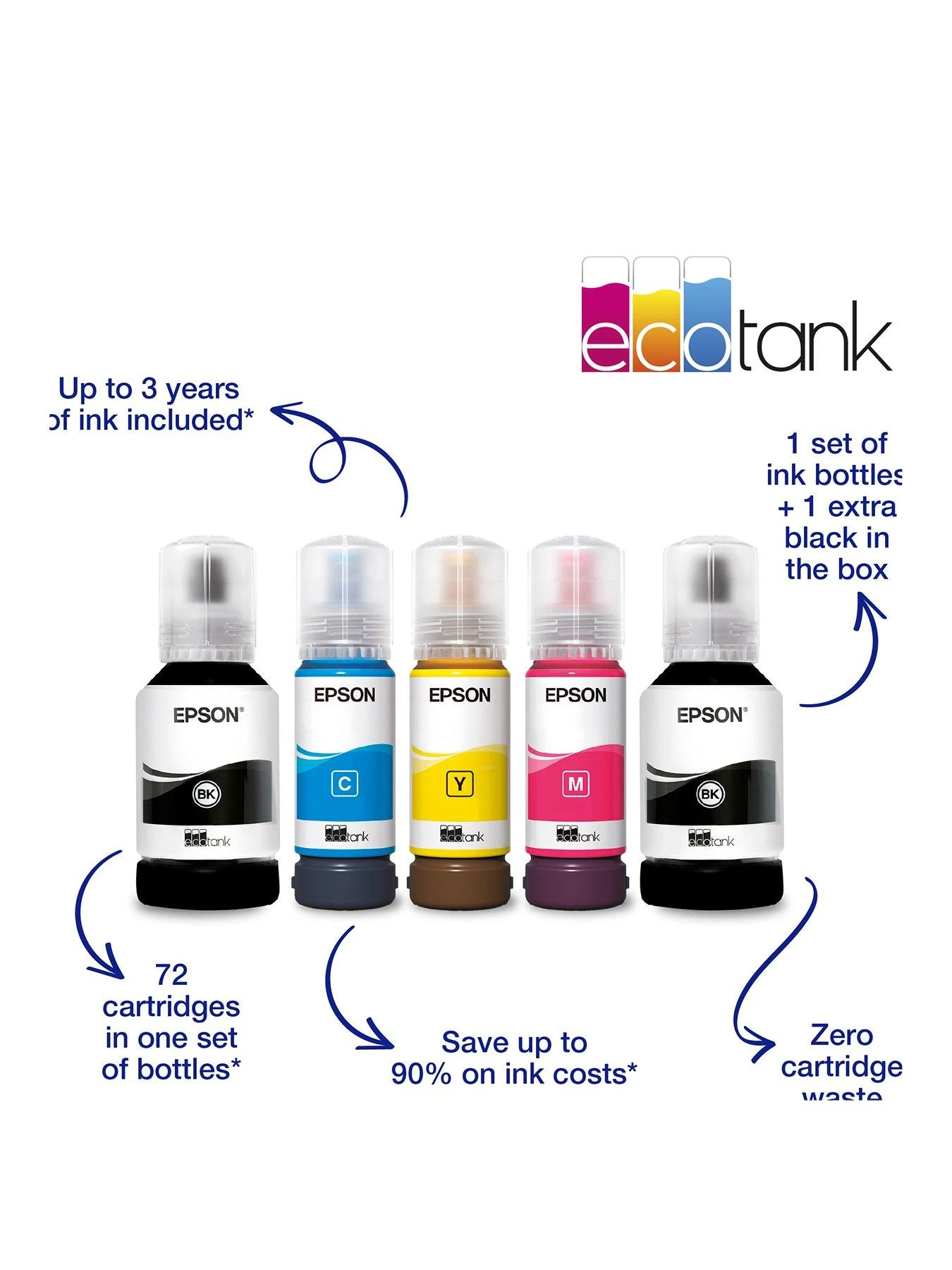 Enjoy mobile printing and an ultra-low cost per page with this multifunction inkjet printer with double-sided printing. Save up to 90% on printing costs with Epson’s cartridge-free EcoTank printers. Supplied with high yield ink bottles, the integrated ink tanks are easy to fill thanks to the specially engineered ink bottles. With no cartridges to replace, flexible connectivity features and double-sided printing, this is the perfect printer for anyone looking for high-quality prints at an incredibly low cost per page.