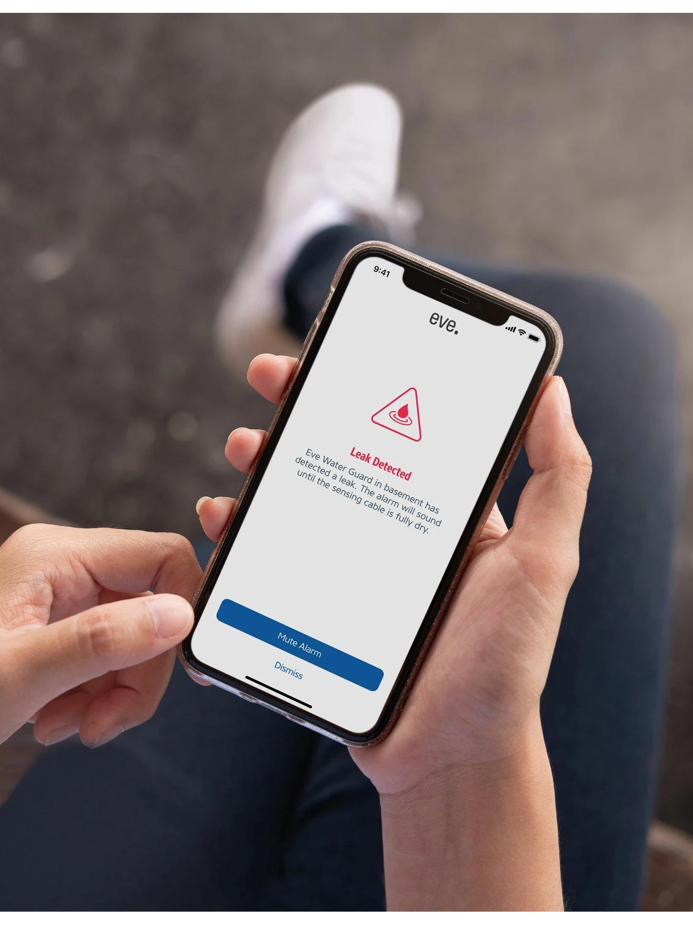 - Avoid expensive water damage: Eve Water Guard detects water leaks, and alerts you the moment they occur.