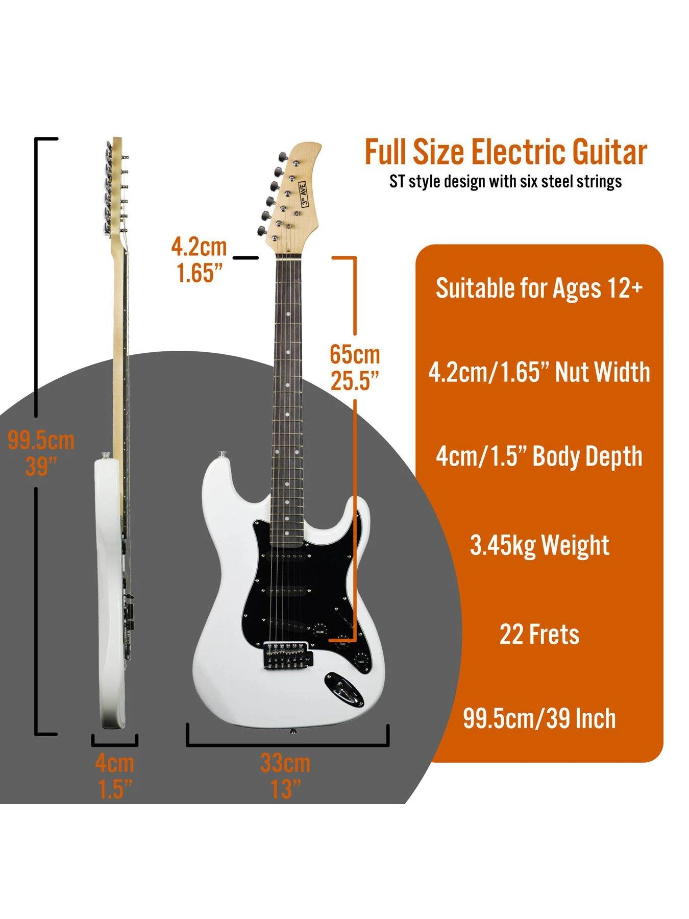 3rd Avenue Electric Guitar Pack – White