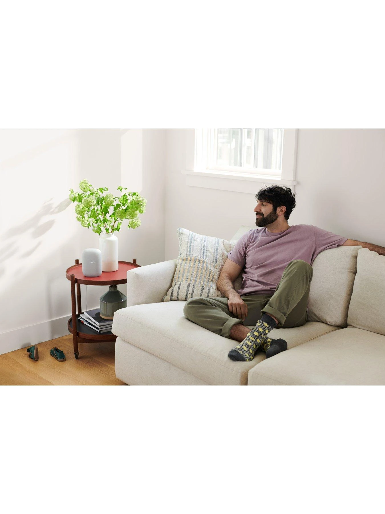 Just say, “Hey Google, play music”, and crisp vocals and powerful bass fill the room. Play your favourite music, radio, podcasts and audiobooks from the streaming services that you use the most. Nest Audio adapts to your environment and whatever you’re listening to, so that music sounds better. And news, podcasts and audiobooks sound even clearer.