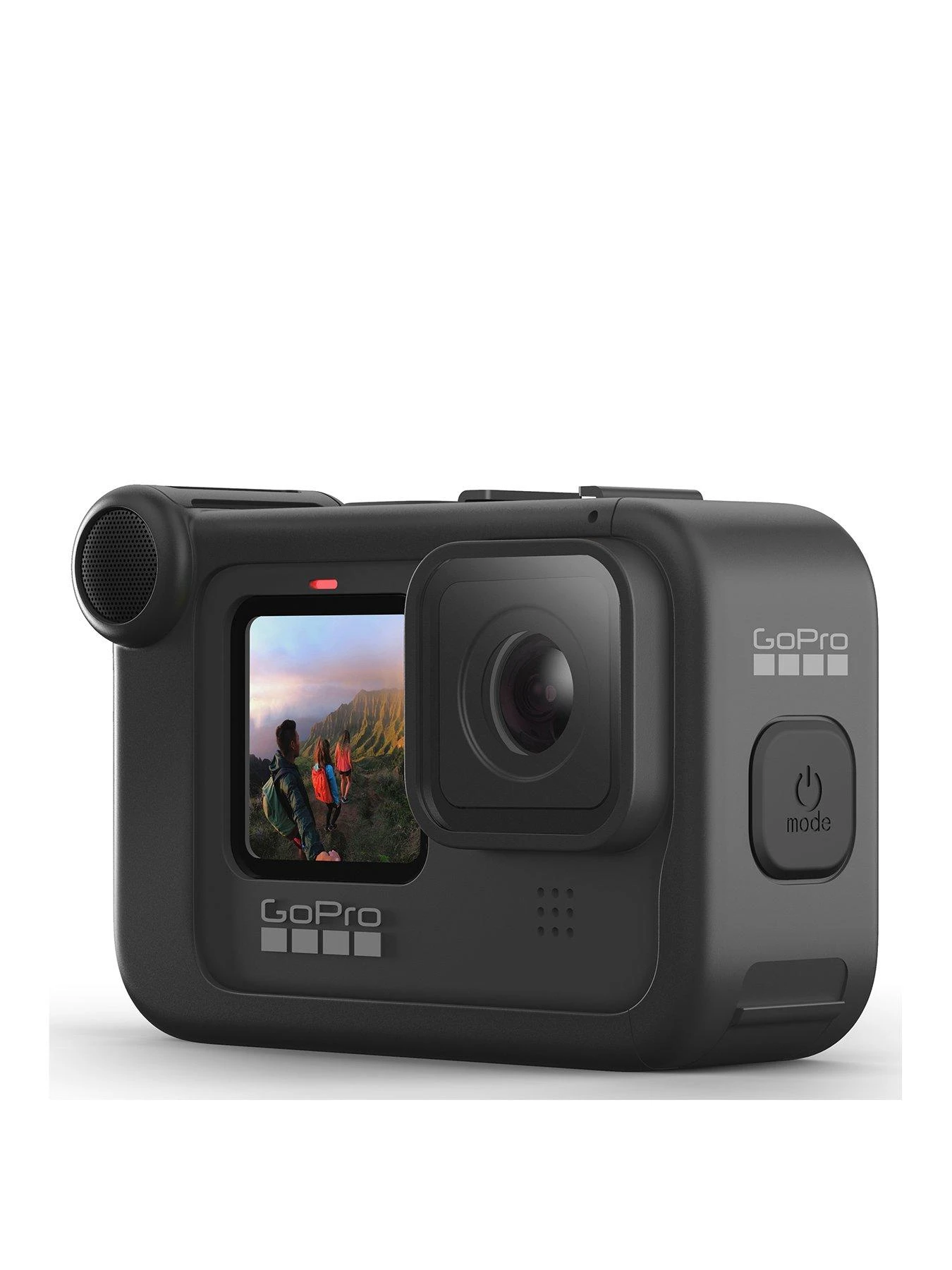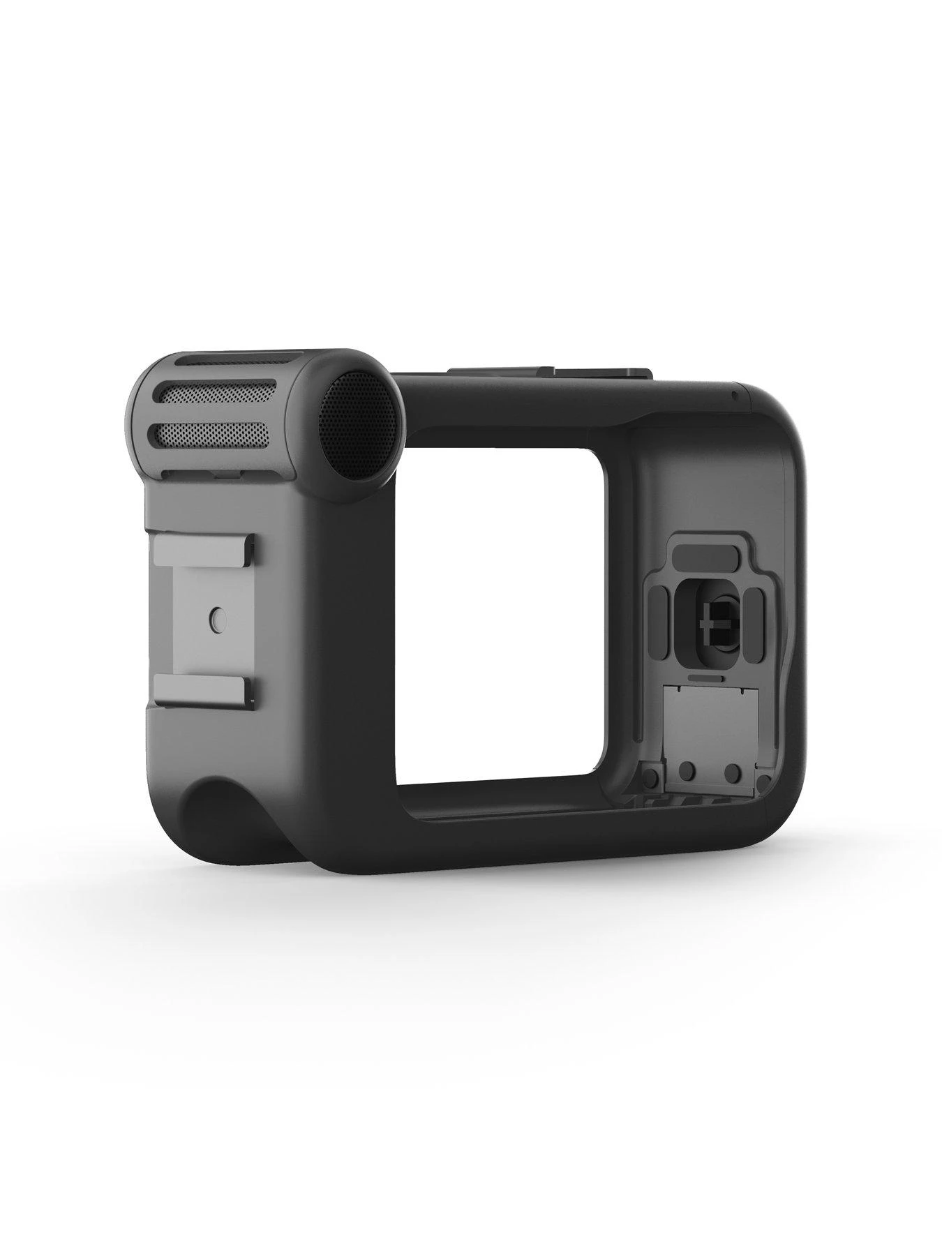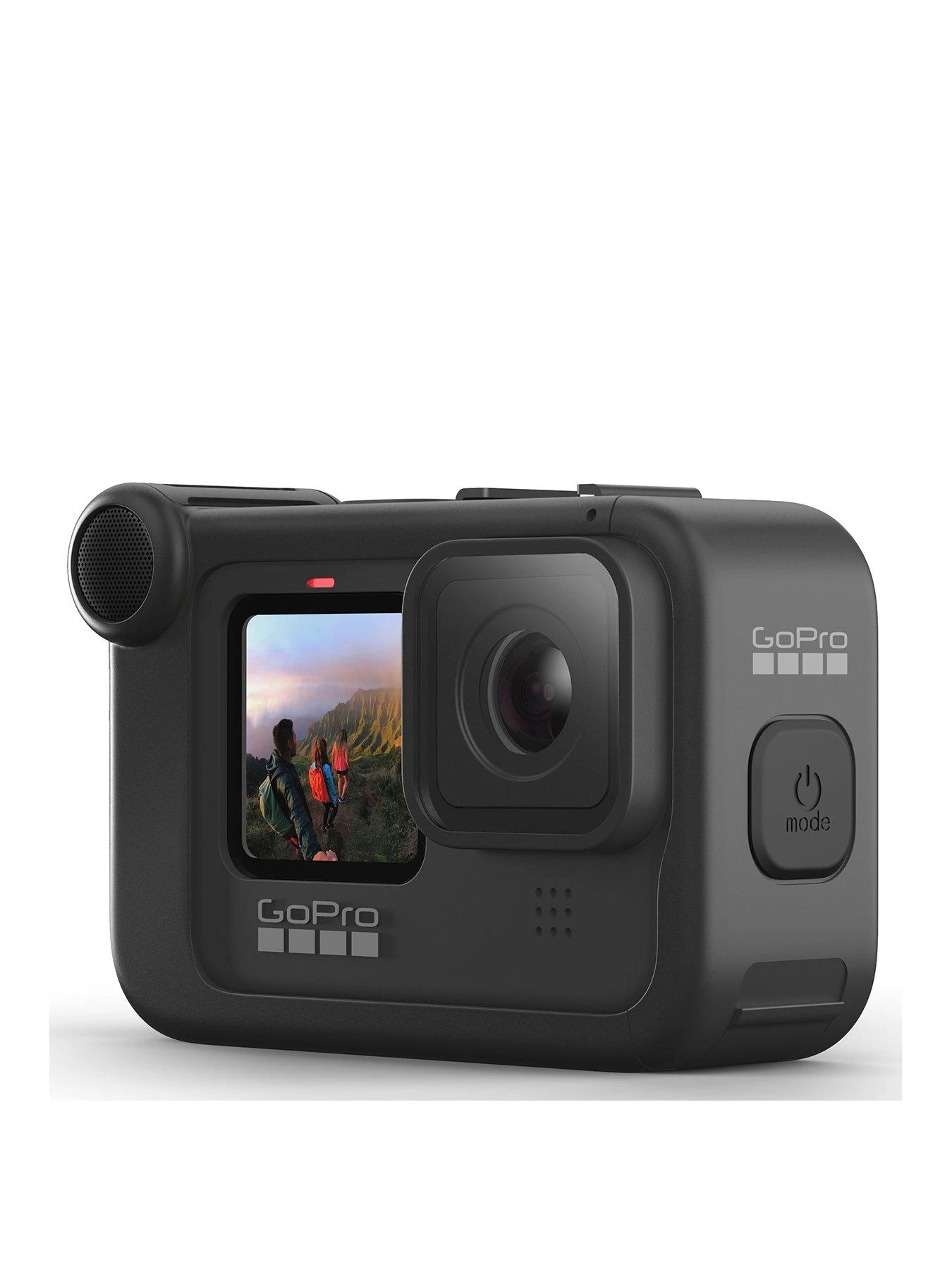 Turn your HERO9 Black into a production powerhouse. Media Mod features a built-in directional mic with wind-suppression, 3.5mm mic port, HDMI-out, two cold-shoe mounts and tough weather-resistant construction.