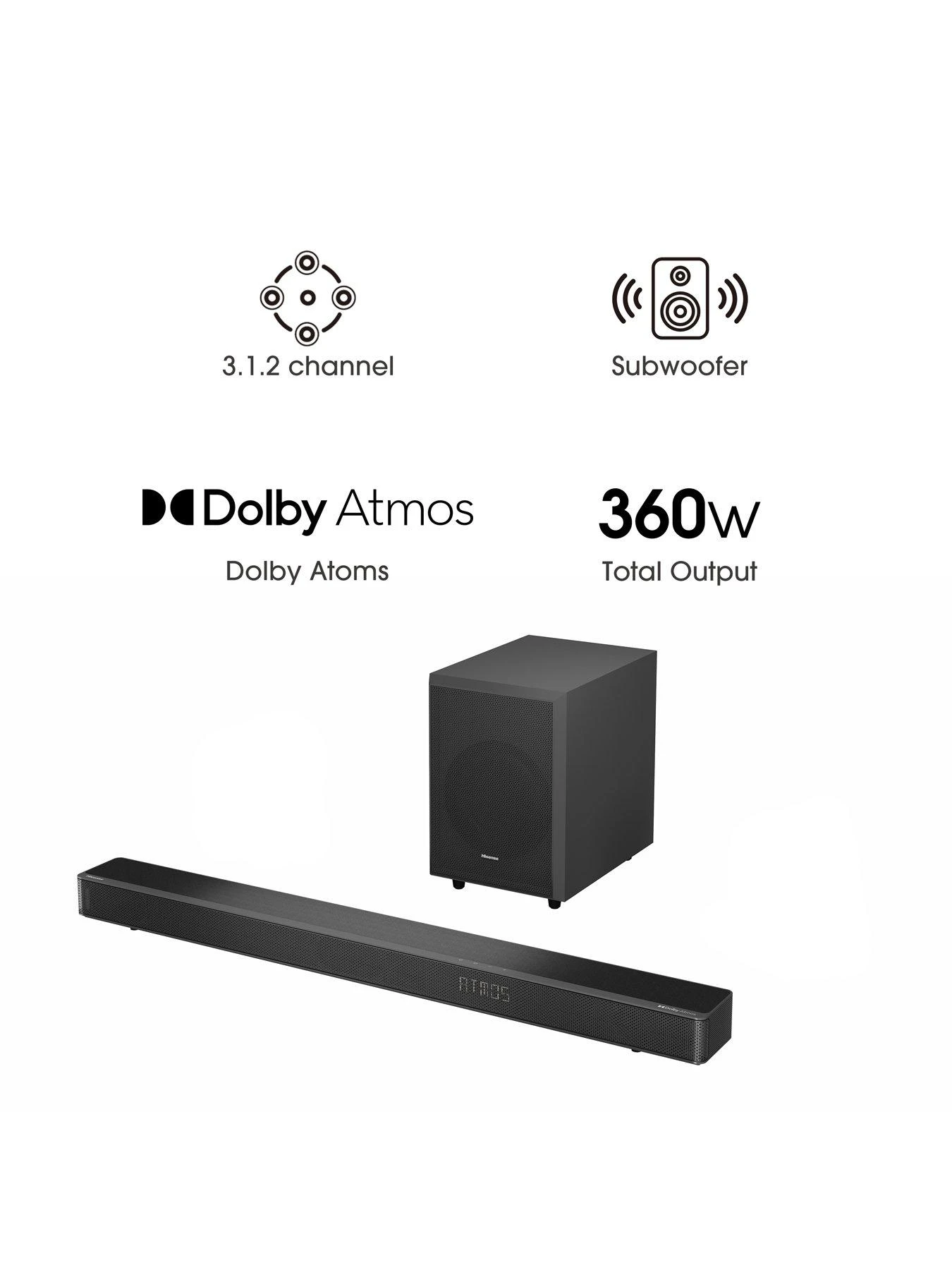Upgrade your audio experience with the AX3120G 3.1.2-channel soundbar and wireless subwoofer. The AX3120G’s 360 watts of sound fills the room with a 7-speaker array inside the soundbar that also projects sound overhead, making the most of Dolby Atmos and creates an immersive, surround sound experience.