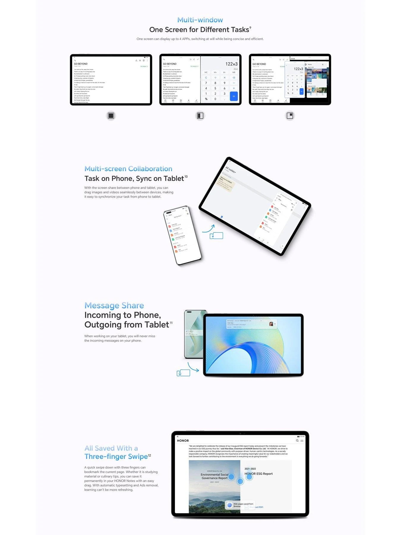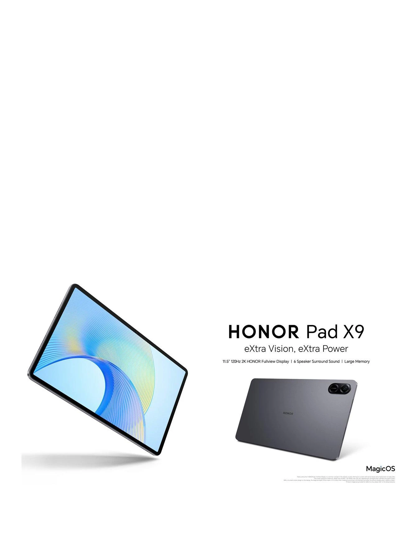 - HONOR Pad X9 is a 11.5” 2K tablet with Fullview display and 86% screen to body ratio which shows every detail for better user viewing experience.