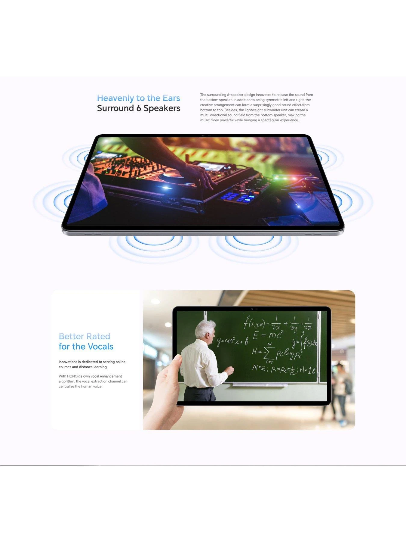 HONOR Pad X9 is a 11.5-inch 2K Tablet with Fullview display and 86% screen to body ratio which shows every detail for better user viewing experience and entertain the whole family by playing music through your speakers or sharing your best videos and photos. The 6 large cavity speakers support Hi-Res Audio and Hi-Res Audio for crystal clear surround sound that enhances all your entertainment.