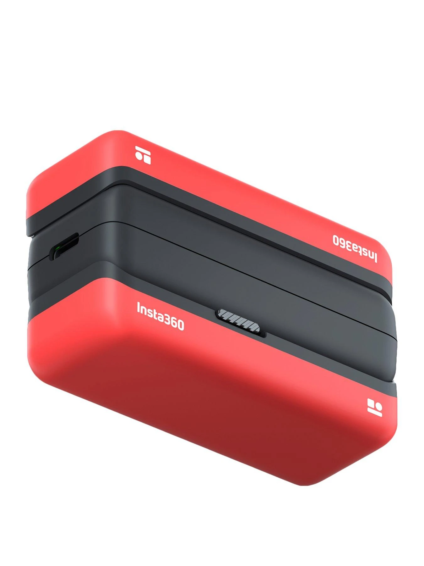 The Insta360 ONE R Fast Charge Hub charges both the Standard and Boosted ONE R Battery Bases, at about twice the speed than usual, in a smart sequence based on battery levels. The Standard Battery Base attaches to one side and the Boosted Battery Base to the other in a compact, efficient setup. The Fast Charge Hub plugs into any 2A or higher USB power outlet via its USB Type-C charging port. A compatible USB cable is sold separately.