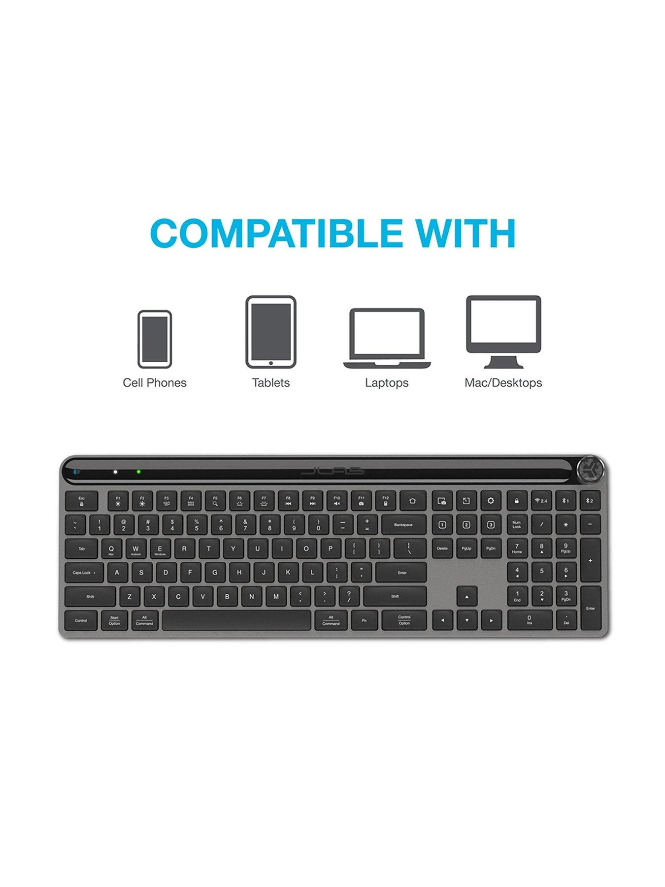 The Epic Wireless Bluetooth Keyboard is minimalist and modern without sacrificing an ounce of premium performance. Designed with a high quality, metal base and a stylish but comprehensive interface, it’s equally at home within a sleek work setup or a legit battlestation. But why choose? With our JLab Work app, you can program specific hotkeys and save up to three unique user profiles so switching between work and play is as easy as changing ‘Who’s Watching’ on Netflix.