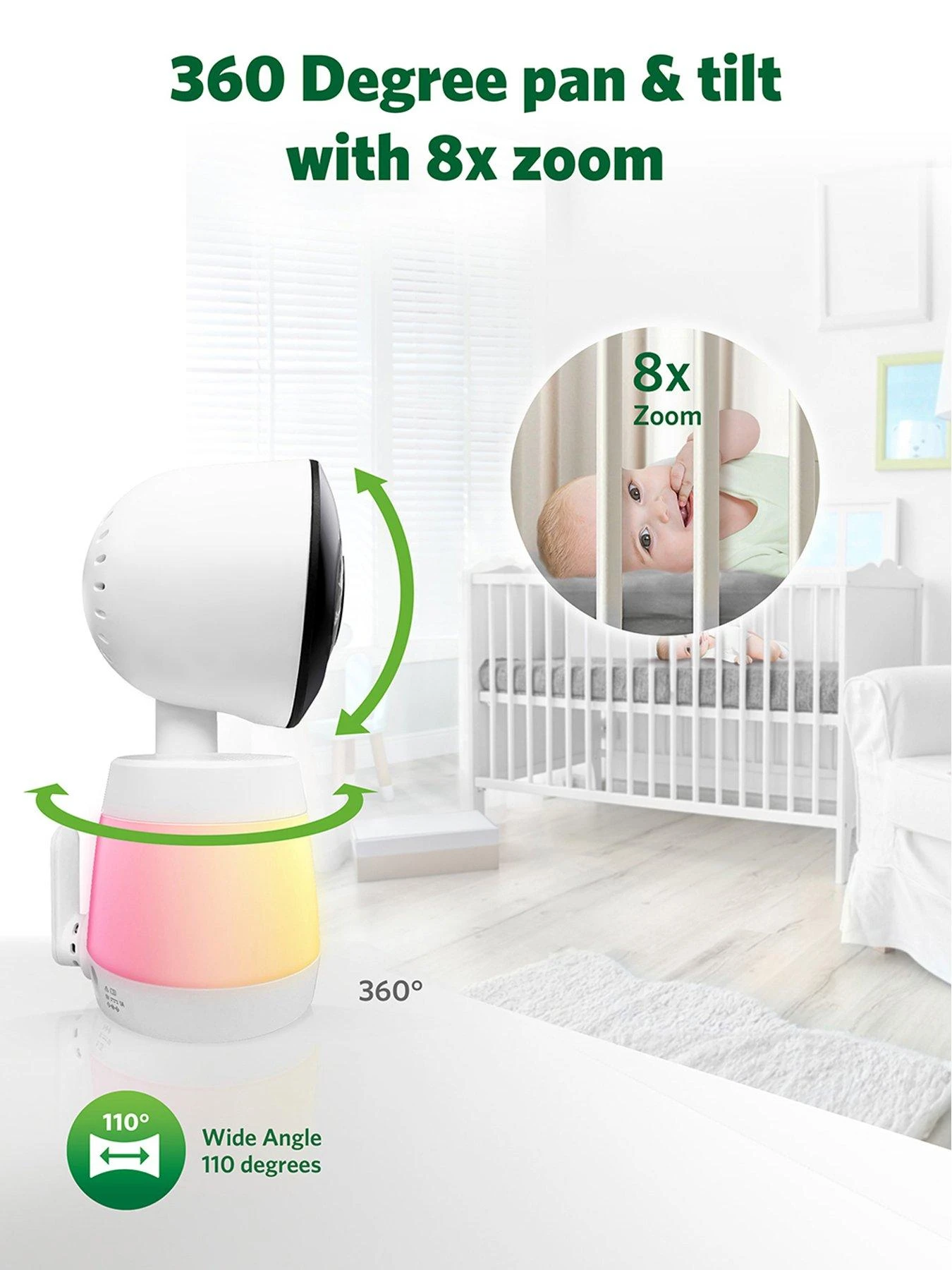 The high-definition display has premier colour and viewing angles. Control the camera with your finger and achieve 360-degree panoramic viewing from the parent unit or remotely, so you can clearly see your baby on your smartphone. The monitor uses advanced night vision technology that’s superior to traditional infrared (black and white) technology.