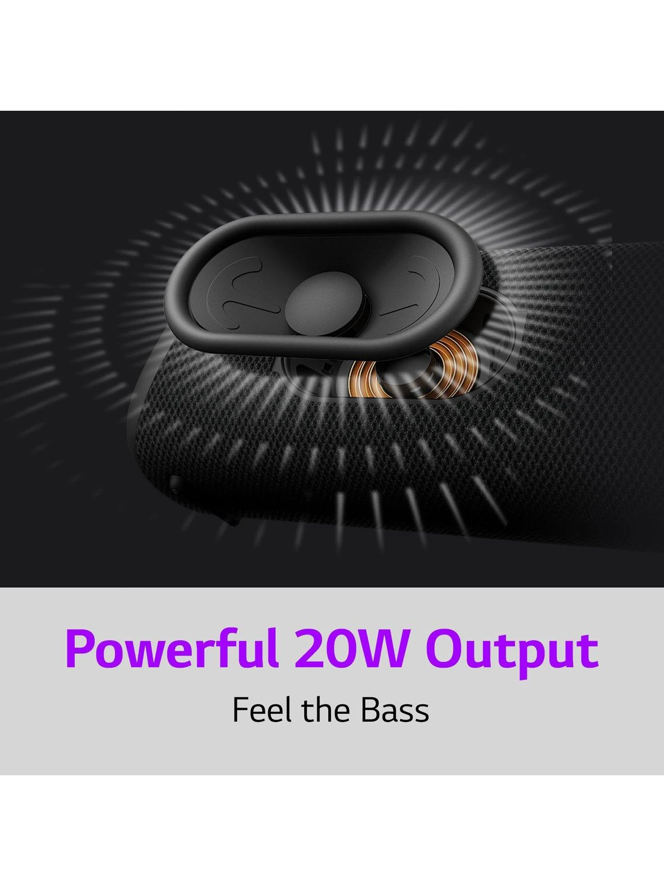 Experience LG XBOOM Go’s remarkable sound that delivers deep bass and powerful sound together with LG’s latest sound technology. With powerful 20W outputs, you can rock to the beat and enjoy an elevated audio experience every time, from meditation to partying with friends.