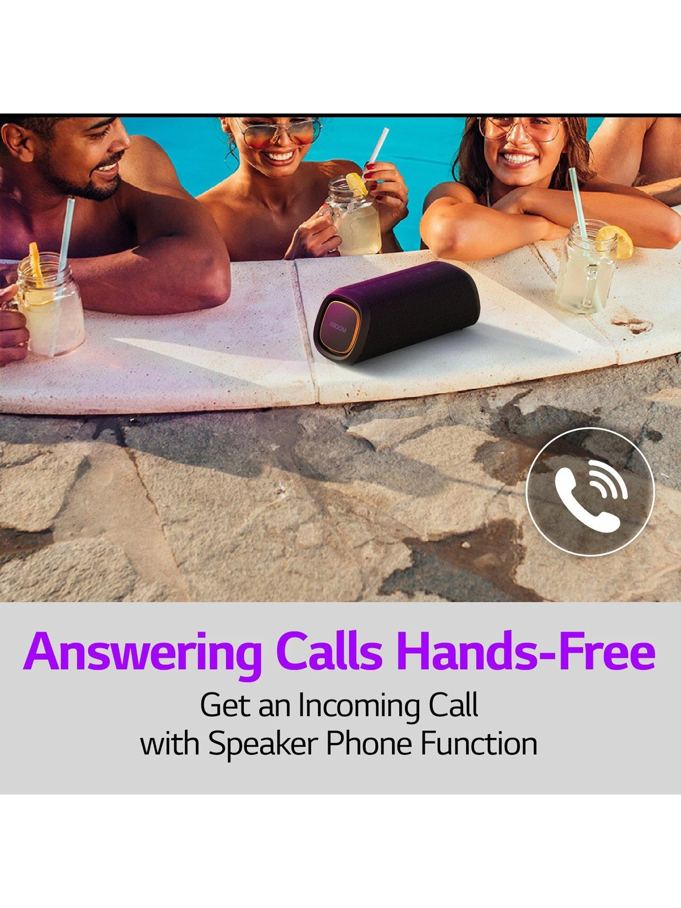 The LG XBOOM Go makes sure you get an incoming call while the music plays by switching so you can chat hands-free.