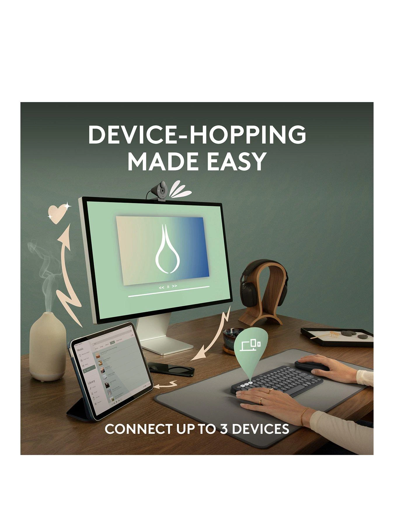 - Easily Hop Across 3 Devices: Use Bluetooth to connect up to 3 wireless devices across OSs (Windows, macOS, iPadOS, ChromeOS).