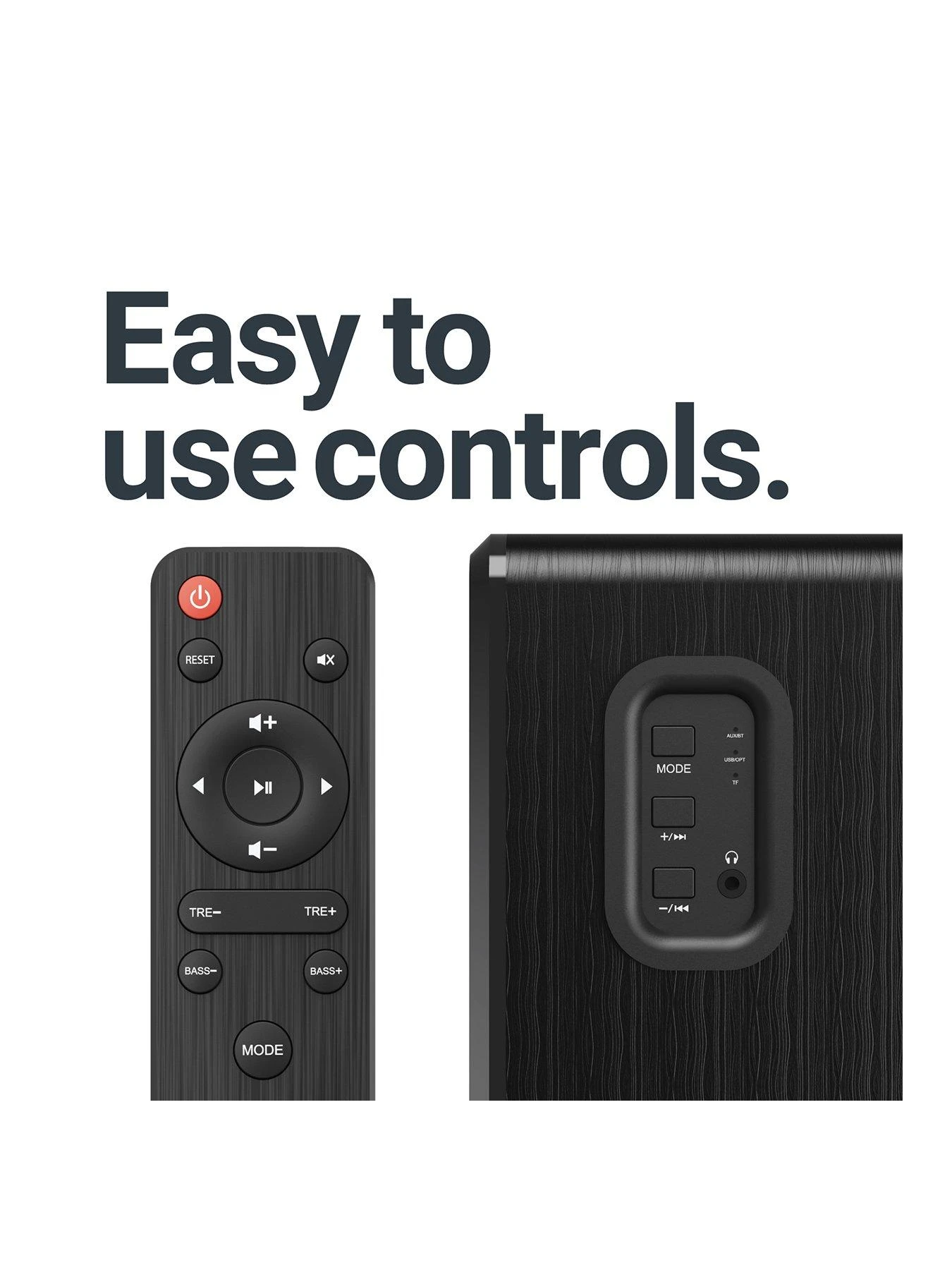 Music, radio, gaming, movies, live sport, tv shows – it all comes to life. Ideal for next to your TV, on a desk or shelf. Use the buttons on the side of the speaker to adjust volume, or use the supplied remote to go truly wireless and adjust Bass, Treble, settings, source and much more. Fill your room and immerse yourself with high definition sound in your very own home.
