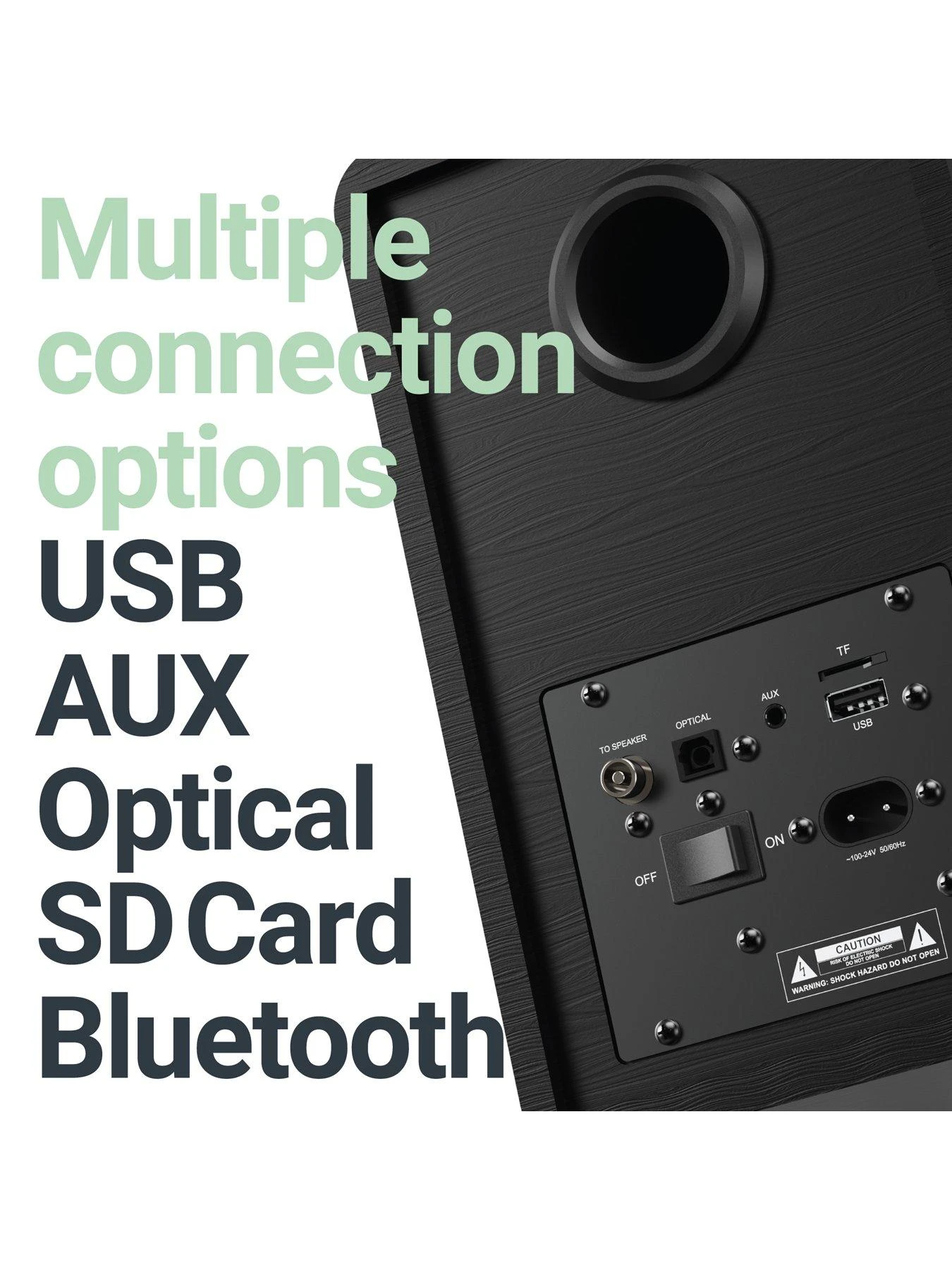 The D40s have been designed with ease of use in mind – simply plug in, and play using the wide range of connections. Connect to your TV or PC in lightning speed by using the optical input for high clarity and rich digital audio, or use the suppled RCA cable for analog connection. Listen to your playlists straight from your phone through the latest Bluetooth technology, plug in your MP3 player to the AUX, and listen to digital files on USB or SD Card.