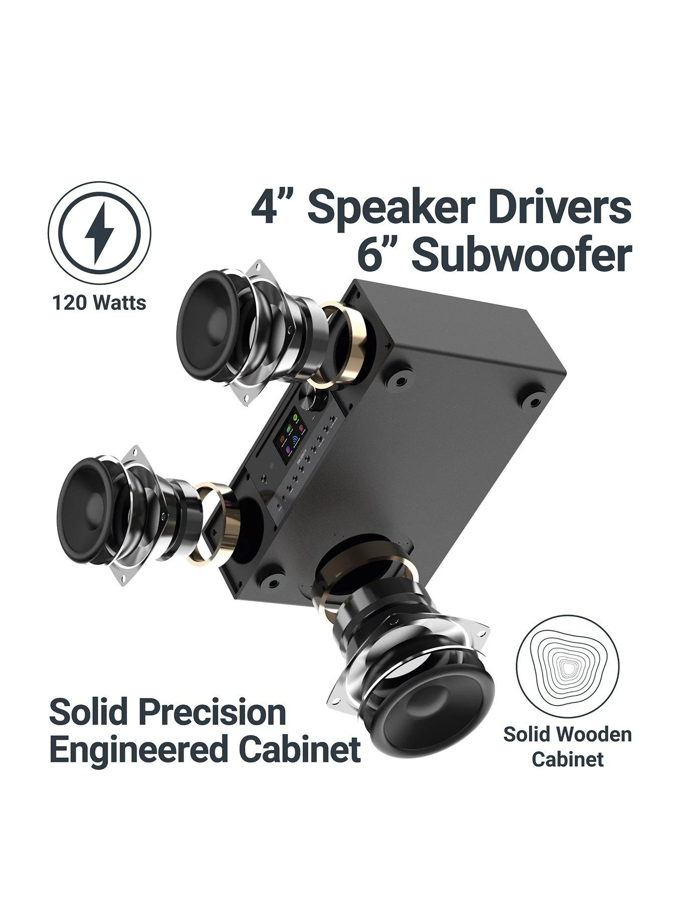 The Quadriga is our all in one music system. It boasts 2 x 4 inch speaker drivers and is backed up by a huge 6 inch powerful subwoofer. Altogether our 120 watt smart internet radio and music system can pack a punch, delivering a deeper bass but with a cleaner and crisper audio. The Quadriga, an out of the world audio experience! Enjoy a wide range of audio channels from DAB and FM radio, additionally when connected to your WiFi, the Quadriga allows you to access thousands of stations in internet radio mode. The Quadriga comes with built in Spotify connect and gives you access to thousands of live podcasts around the world. Our CD player and sound system can play music from a USB flash drive or CD, play audio books and playlists from your phone using the AUX, RCA or Optical inputs and even connect through the Bluetooth feature to go fully wireless – play, pause and skip with the supplied remote control.