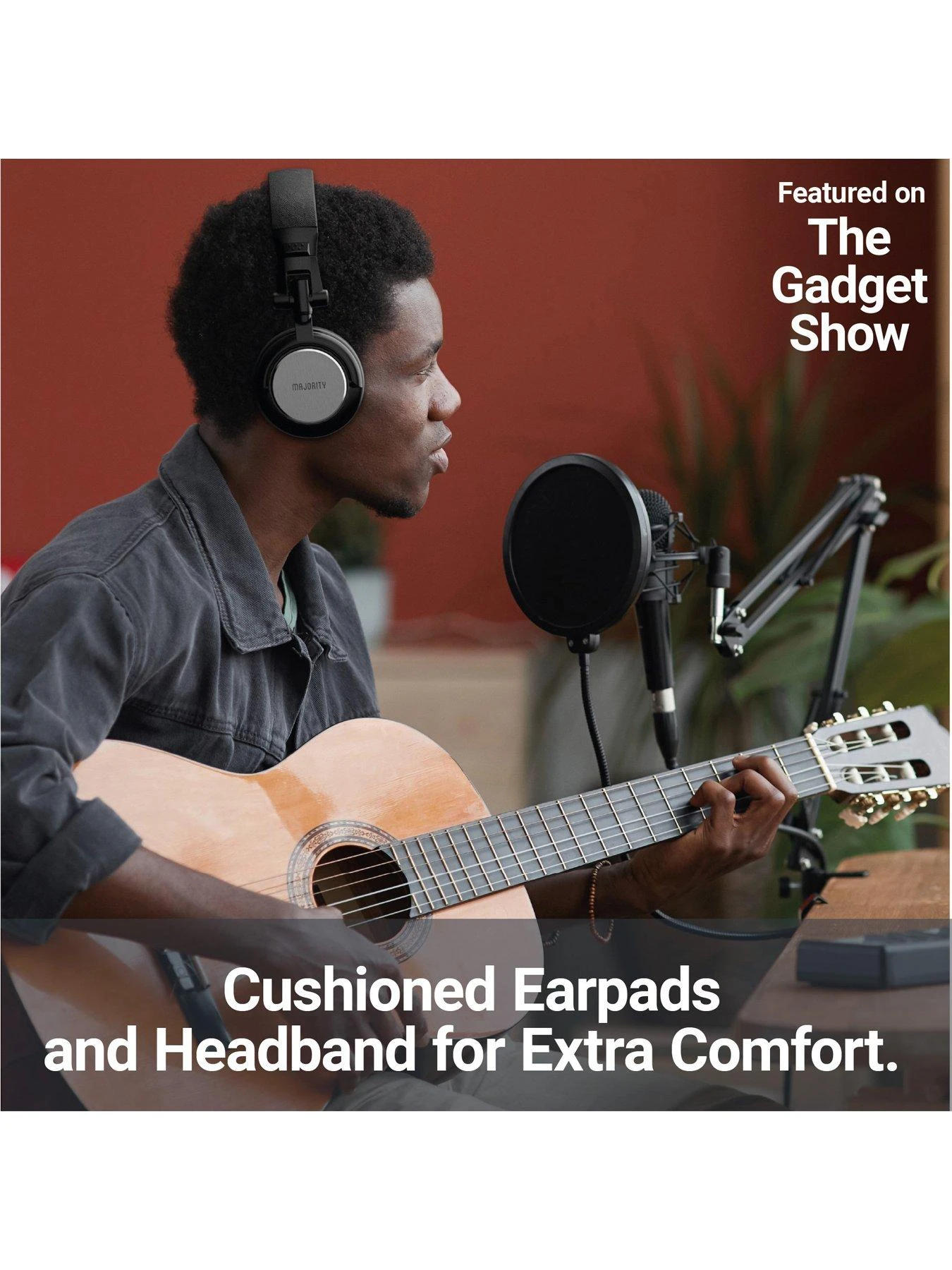 Experience crystal clear vocals, deep bass and crisp high tones from the Studio 1 over ear headphones by Majority. Our state of the art 50mm speaker drivers delivery an immersive listening experience for our users. The Studio 1 wired headphones are super light and portable at just 308 grams. The closed back, adjustable headband, swivel ear cups and cushioned headband and earpads make the Studio 1 headphones the ultimate over ear headphone for comfort and flexibility. All the adjustments built into this device has been carefully thought out to conform to every unique head shape with ease. The headphones come will a coiled cable, foldable design and a travel bag making them ultra portable.