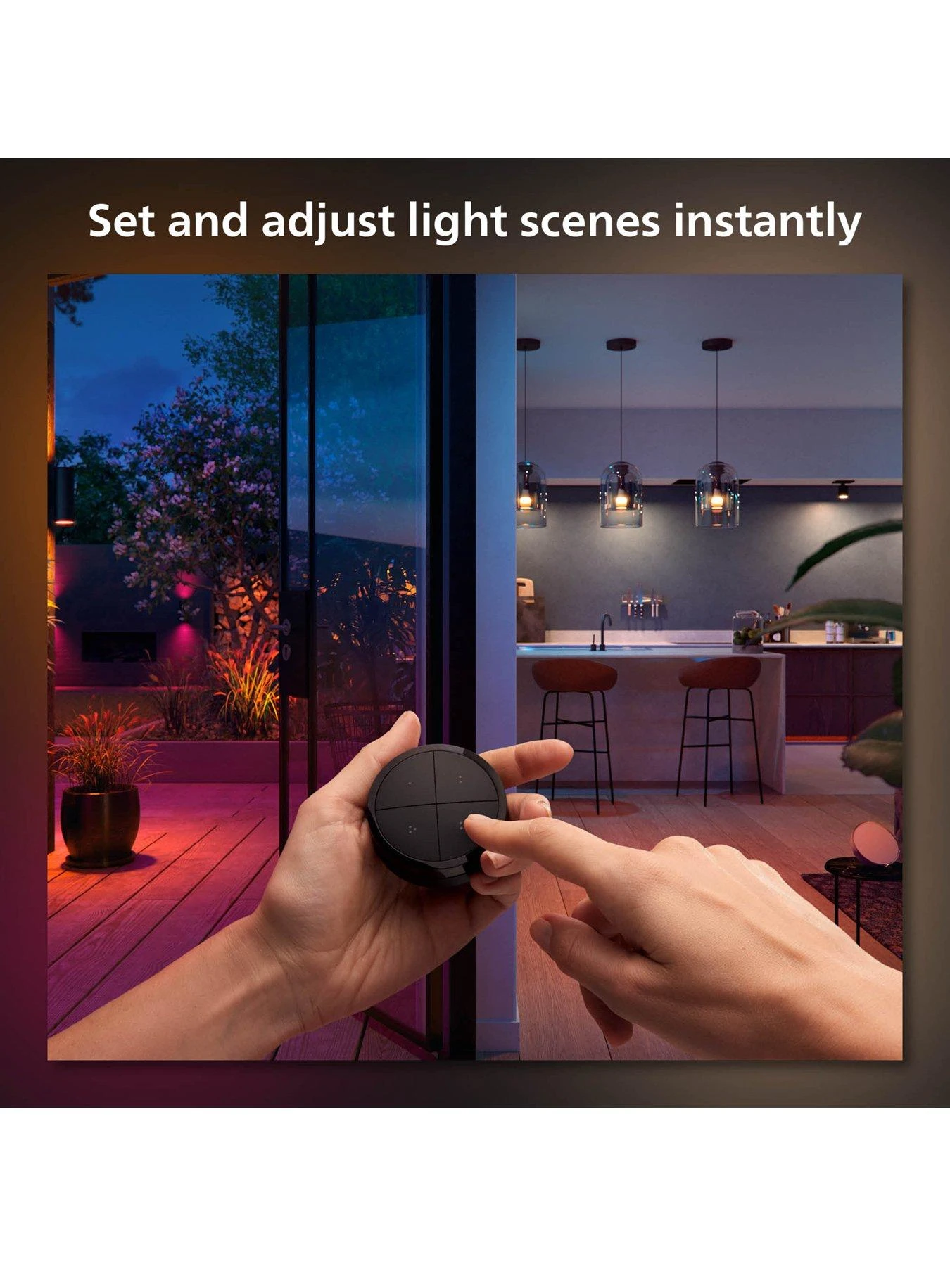 Control up to three Rooms or a Zone with each individual button of the Tap dial switch, available in black or white. Turn the dial to dim and brighten the lights. Mount it to the wall, place it on a magnetic surface, or use it as a remote control.