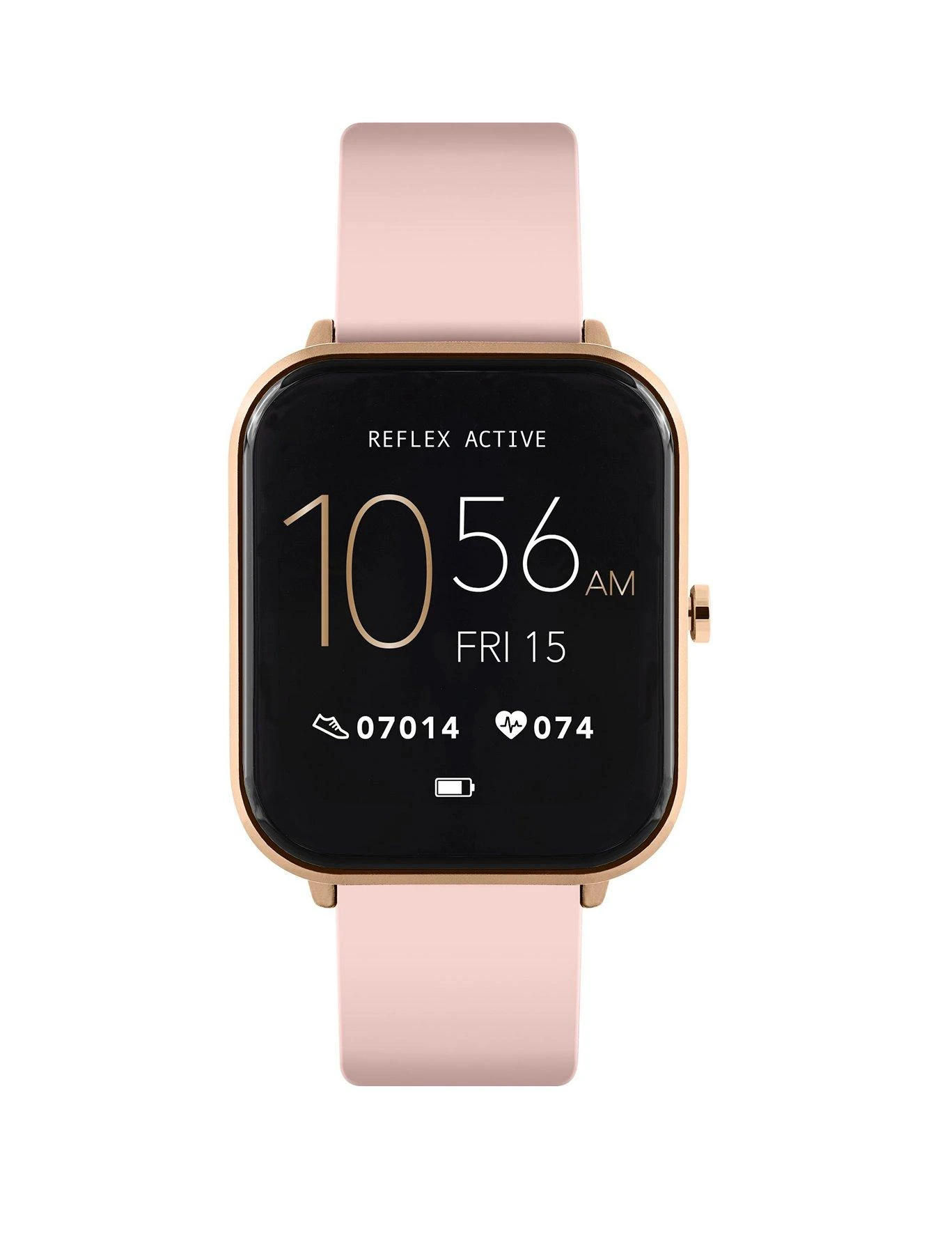 The watch features a Pink silicone strap and square rose gold alloy case. Each watch is packed in a Reflex Active presentation gift box complete with instruction manual, USB charger (sealed rechargeable battery) and 2-year manufacturer guarantee. IP68 Water Resistant. Download the free Reflex Active Red App now to explore in more detail. IOS & Android Compatible.