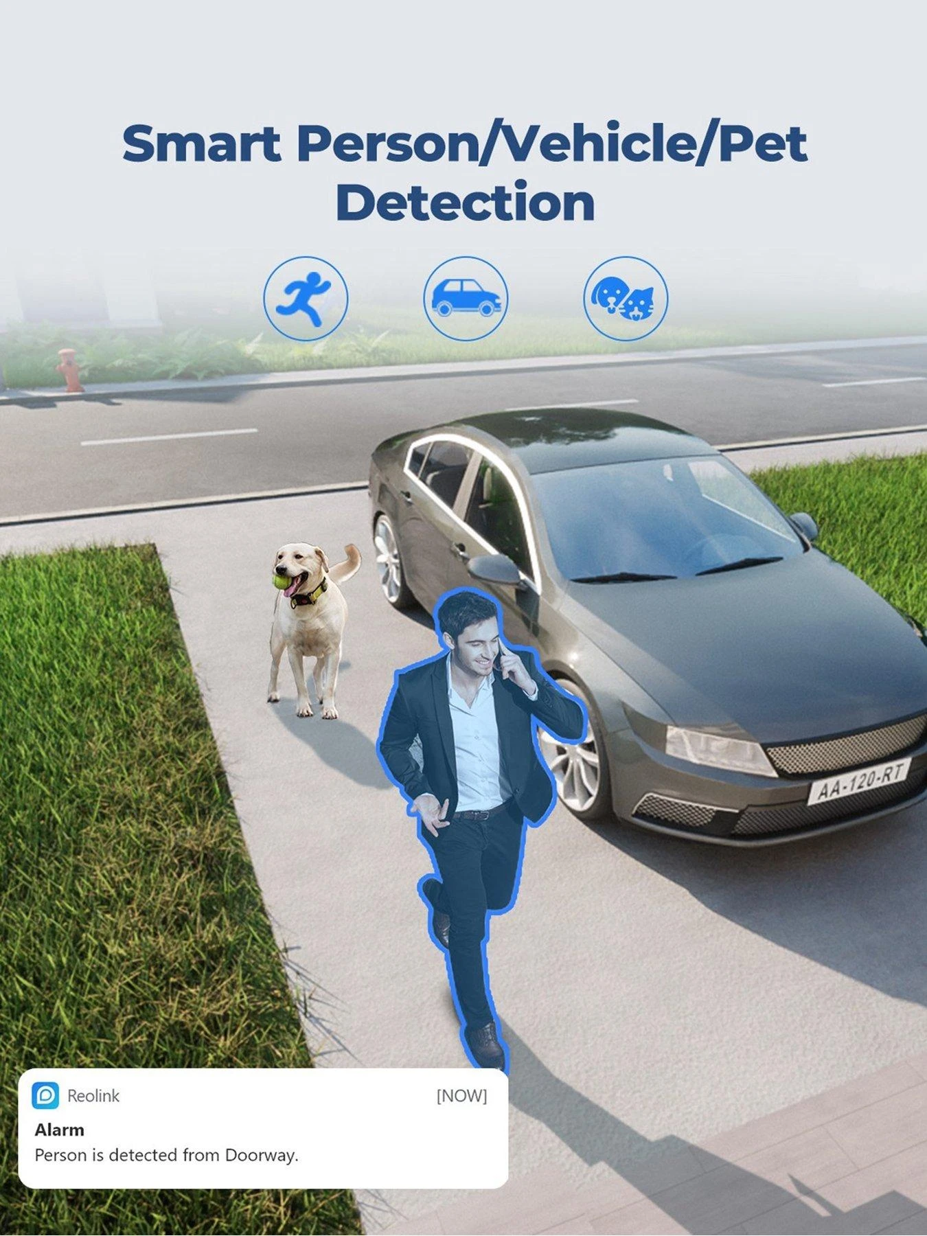 Reolink Duo 2 4K can not only detect moving people and vehicles, but also detect your cats and dogs. Also, with the built-in mic and speaker, it’s quite easy to respond to the coming person, car, or pet.