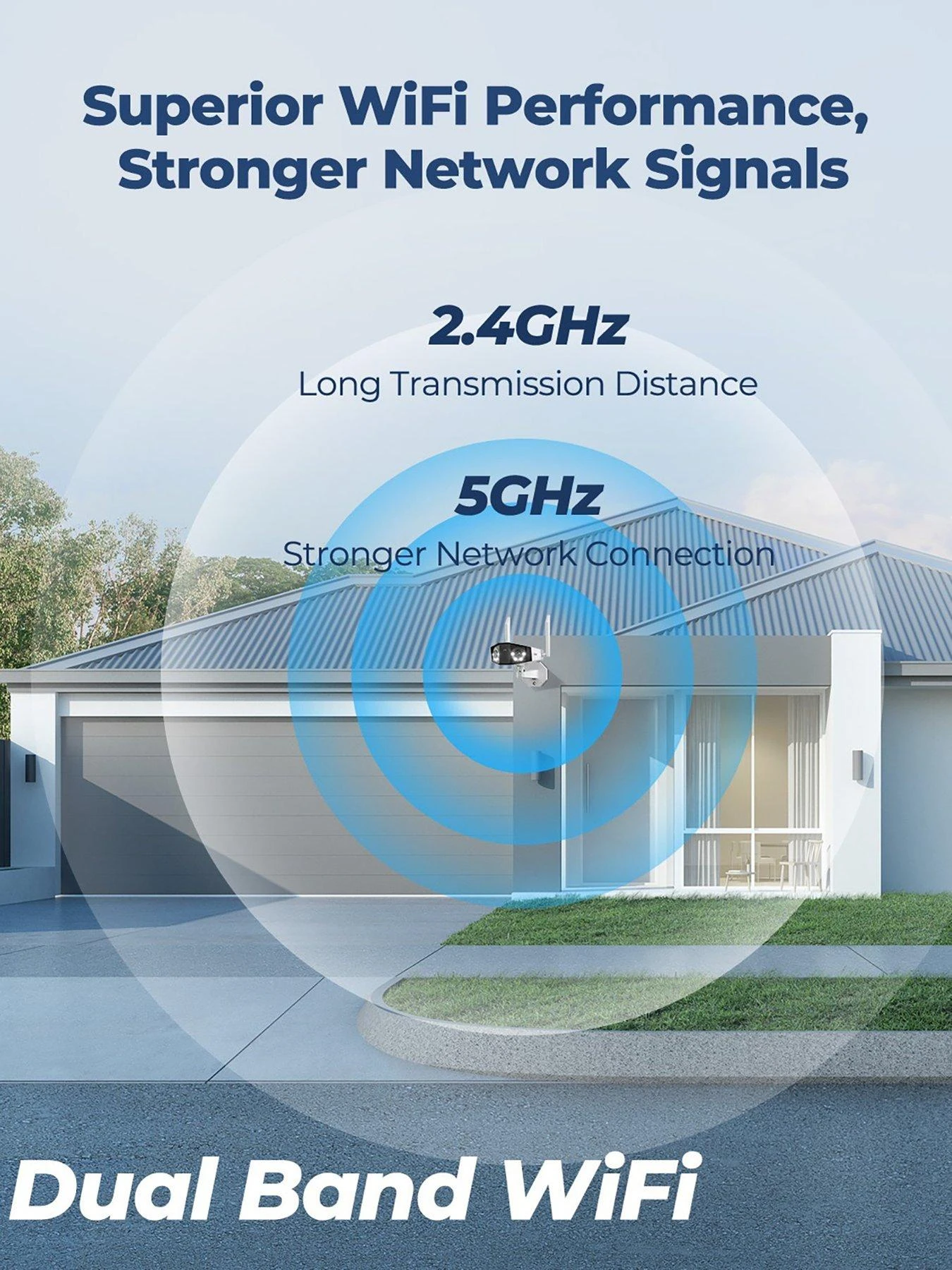 Enjoy a smoother live view with the higher data rate and better anti-interference capability brought by the 5GHz (5.8GHz) WiFi. Feel free to stay with the 2.4GHz band or switch to the 5GHz band for the best network performance.