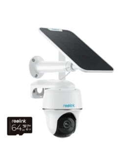 Reolink 4G LTE 4MP Super HD Pan&Tilt 100% Wireless Camera. Include eco-friendly solar panel panel for constant charging. Person/Vehicle Detection. Two-way audio. Infrared Night Vision. Includes 64GB SD Card. Remote access by Free Reolink App & Client