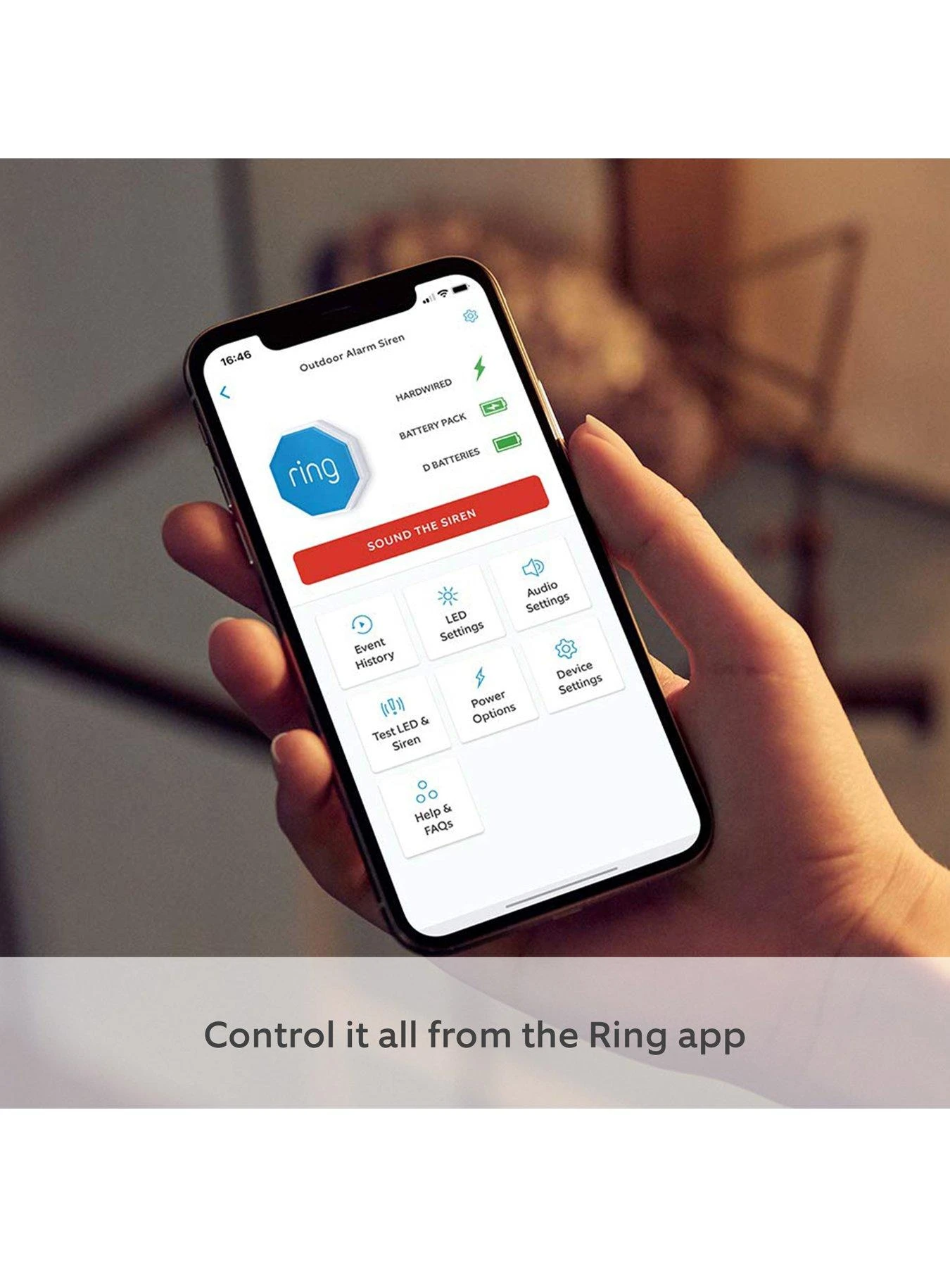 If Ring Alarm is triggered, Outdoor Siren emits a security siren and flashing LED lights to alert others and help locate your home.