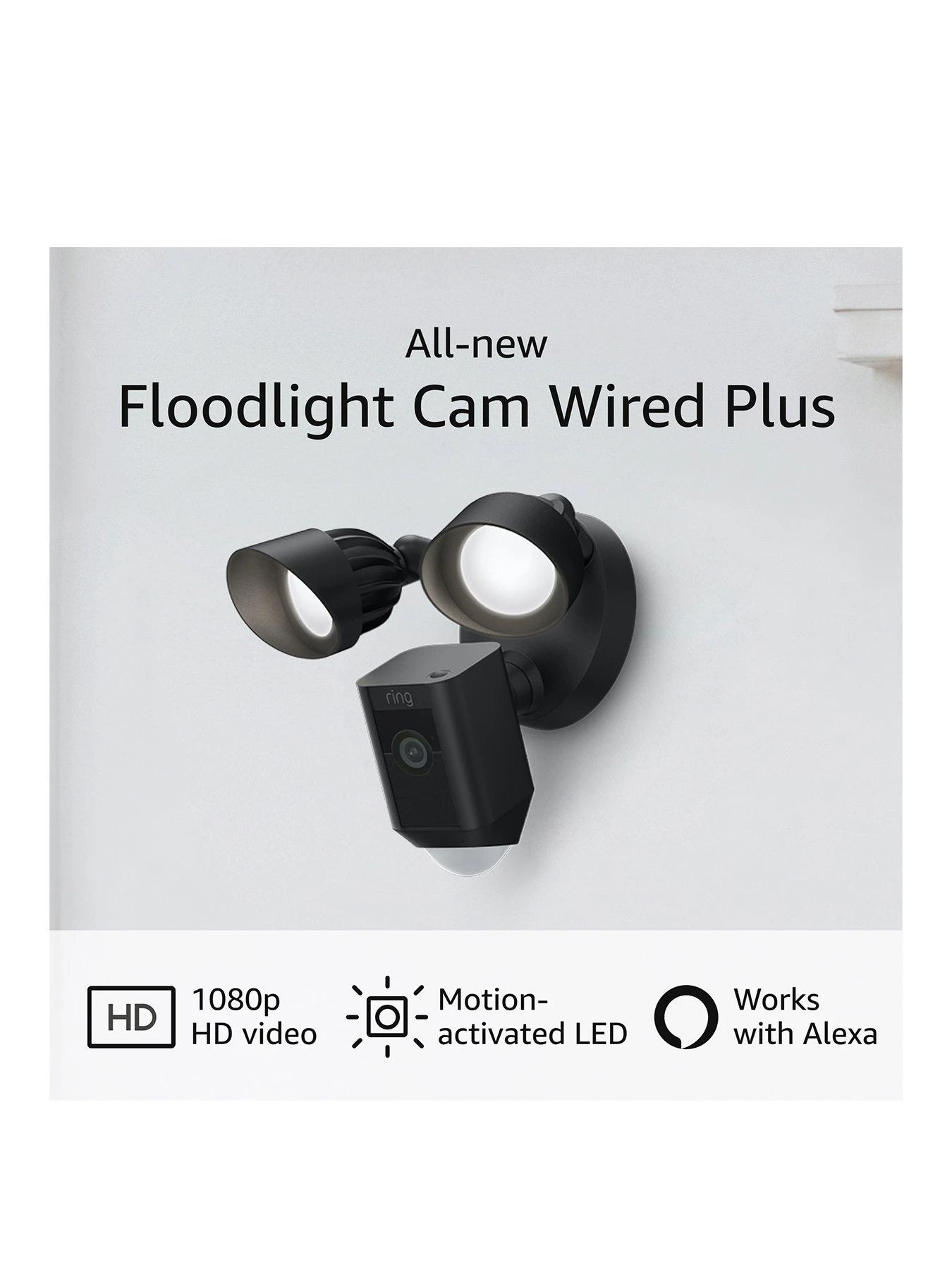 Hardwired for non-stop peace of mind, Ring Floodlight Cam Wired Plus offers reliable outdoor protection and advanced motion detection, day or night.