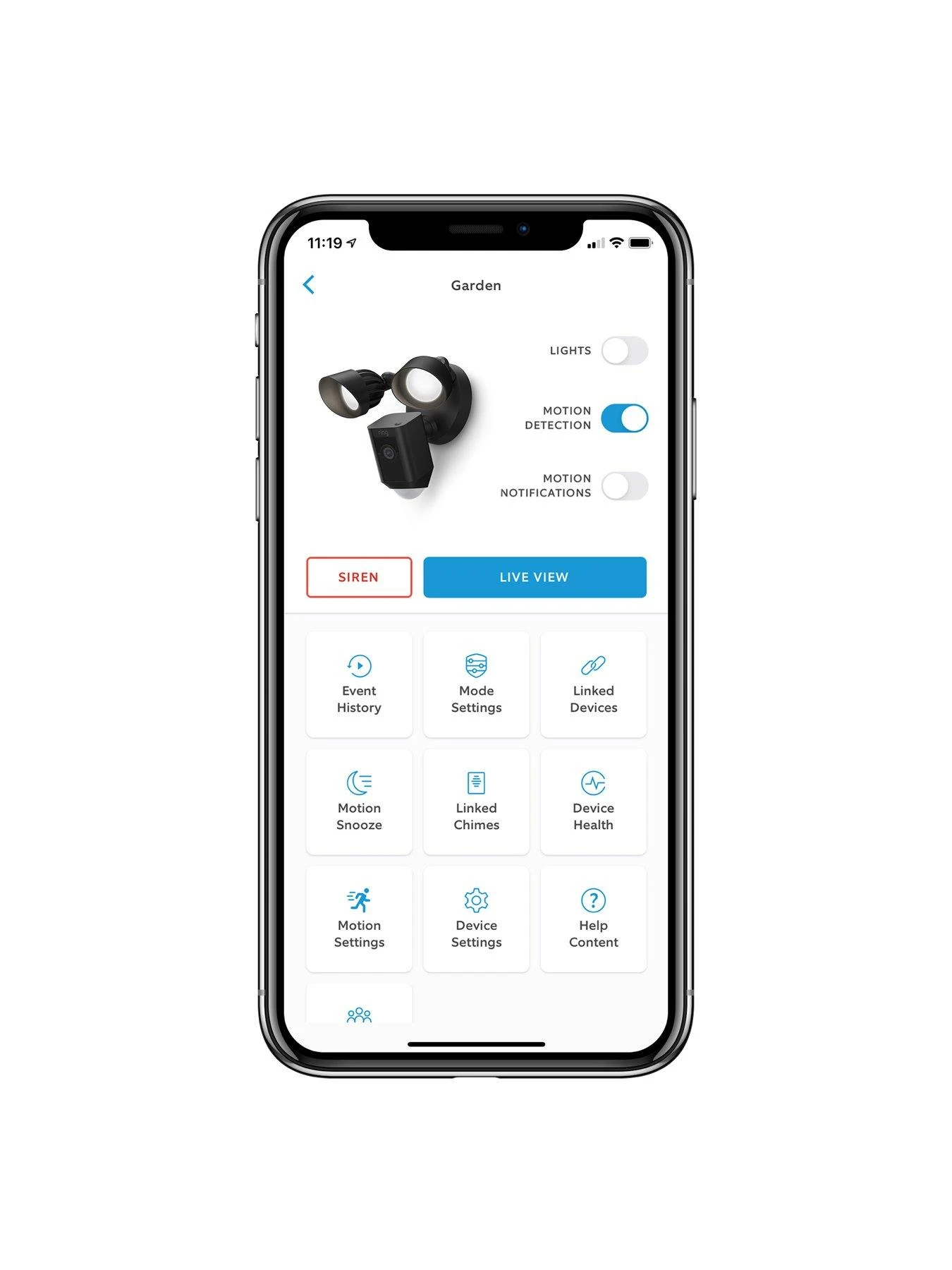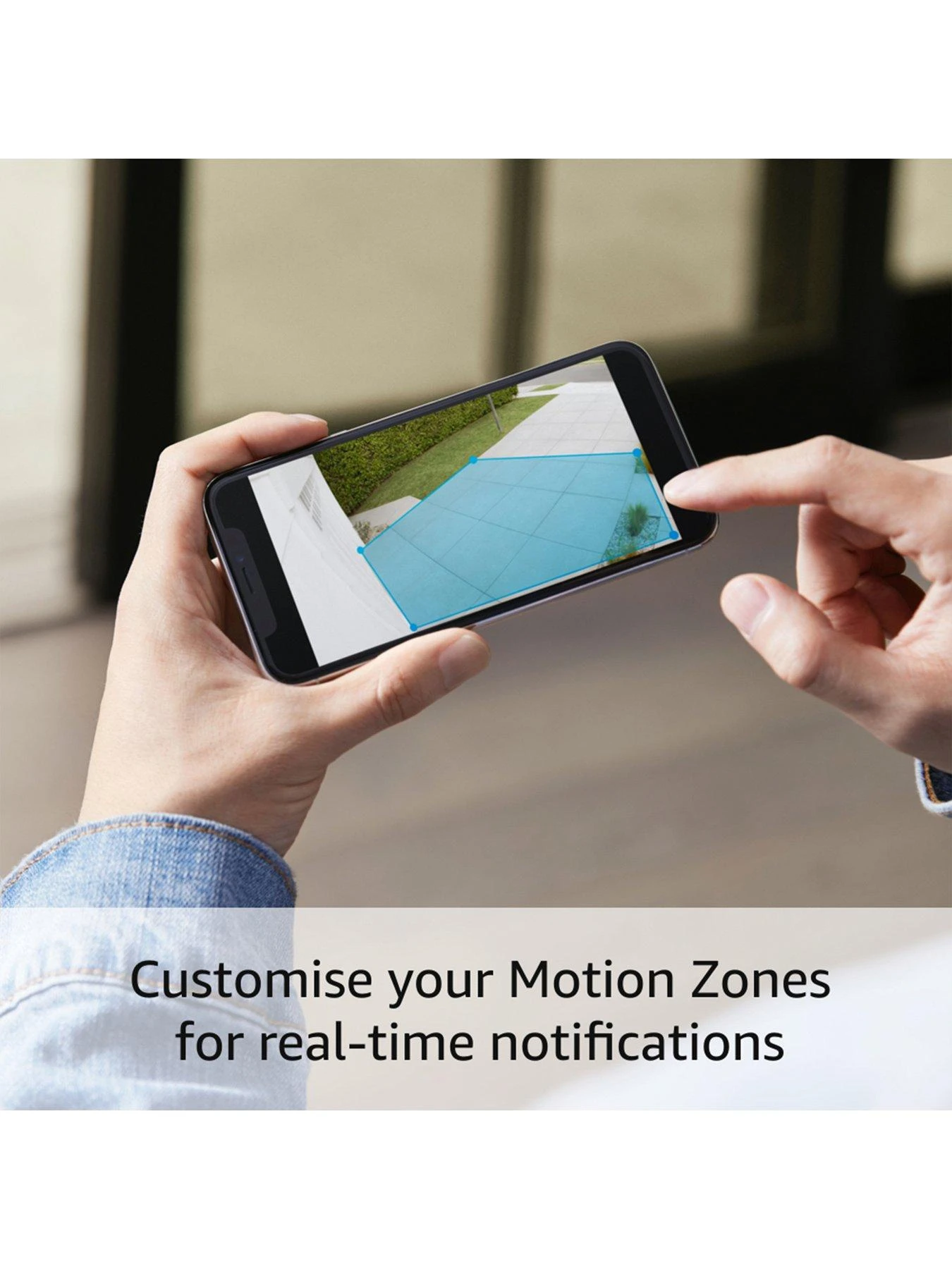 Designed for larger areas of your home, such as driveways and gardens, Ring Floodlight Cam Wired Plus features a remote-activated security siren and LED floodlights for protection when you need it, and extra visibility at night. Customisable Motion Zones let you focus your security on the areas of your property that matter most.