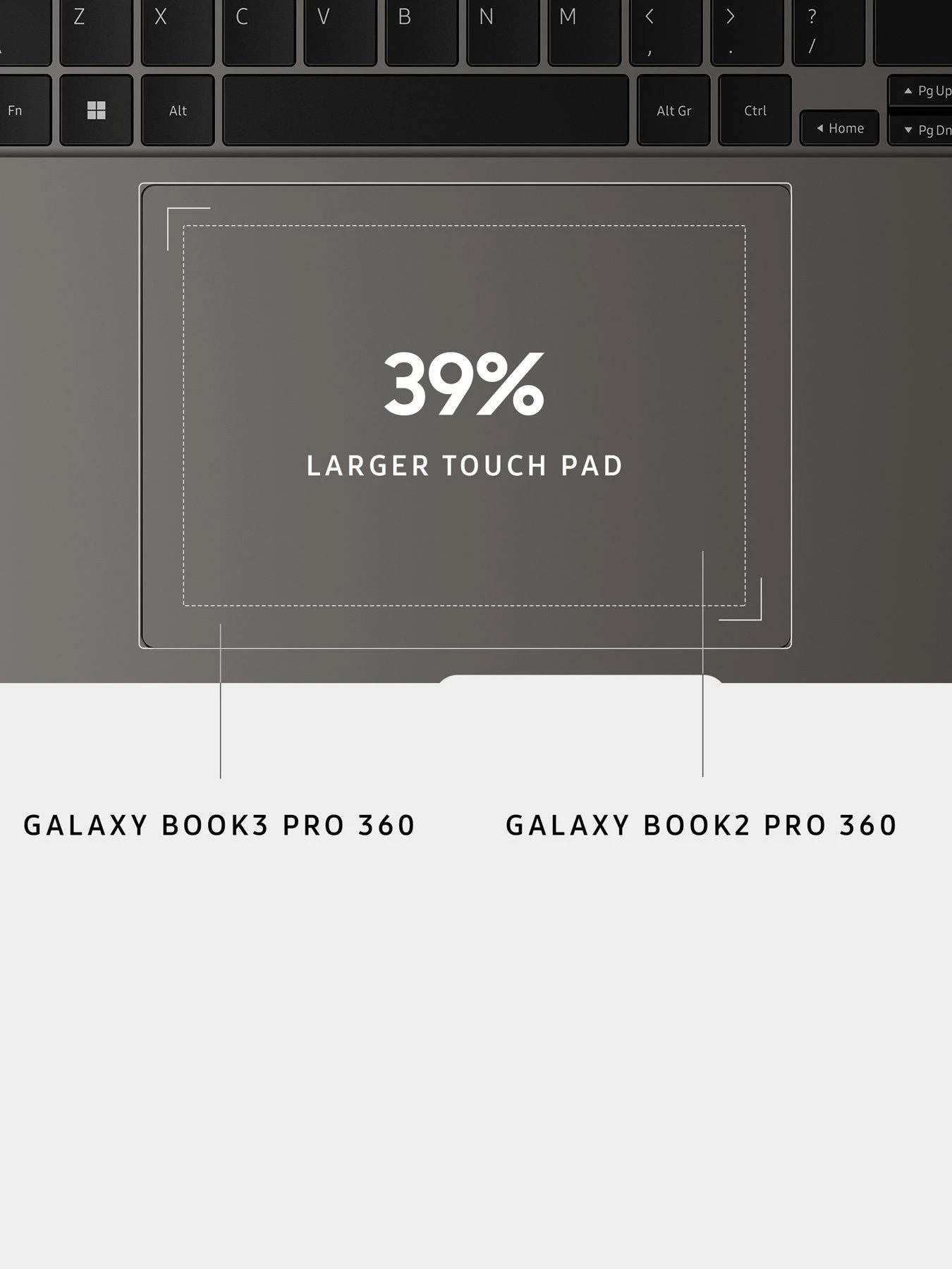 Experience amazing colour and clarity with Galaxy Book3 360, thanks to the 15.6-inch Full HD Super AMOLED touchscreen. With bright whites, deep blacks and a super-fast response time, streaming films and playing games never looked so good. Tuned with Dolby Atmos, the stereo speakers also level up your content with stunning sound detail. Also includes an auto-framing 1080p webcam.