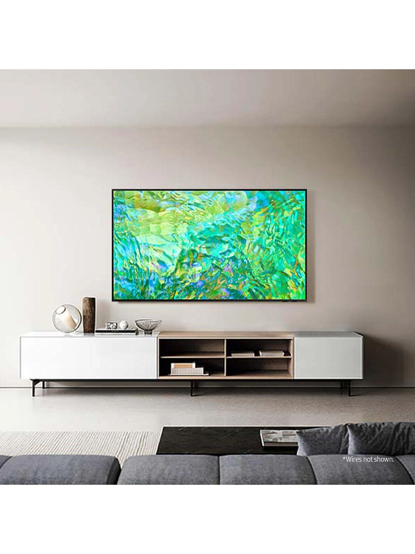 You don’t just want your TV to look good when it’s on – you want it to blend into your room when it’s off too. This Samsung CU8000 TV has a slim design with a clean cable solution, so it will look stunning from any angle.