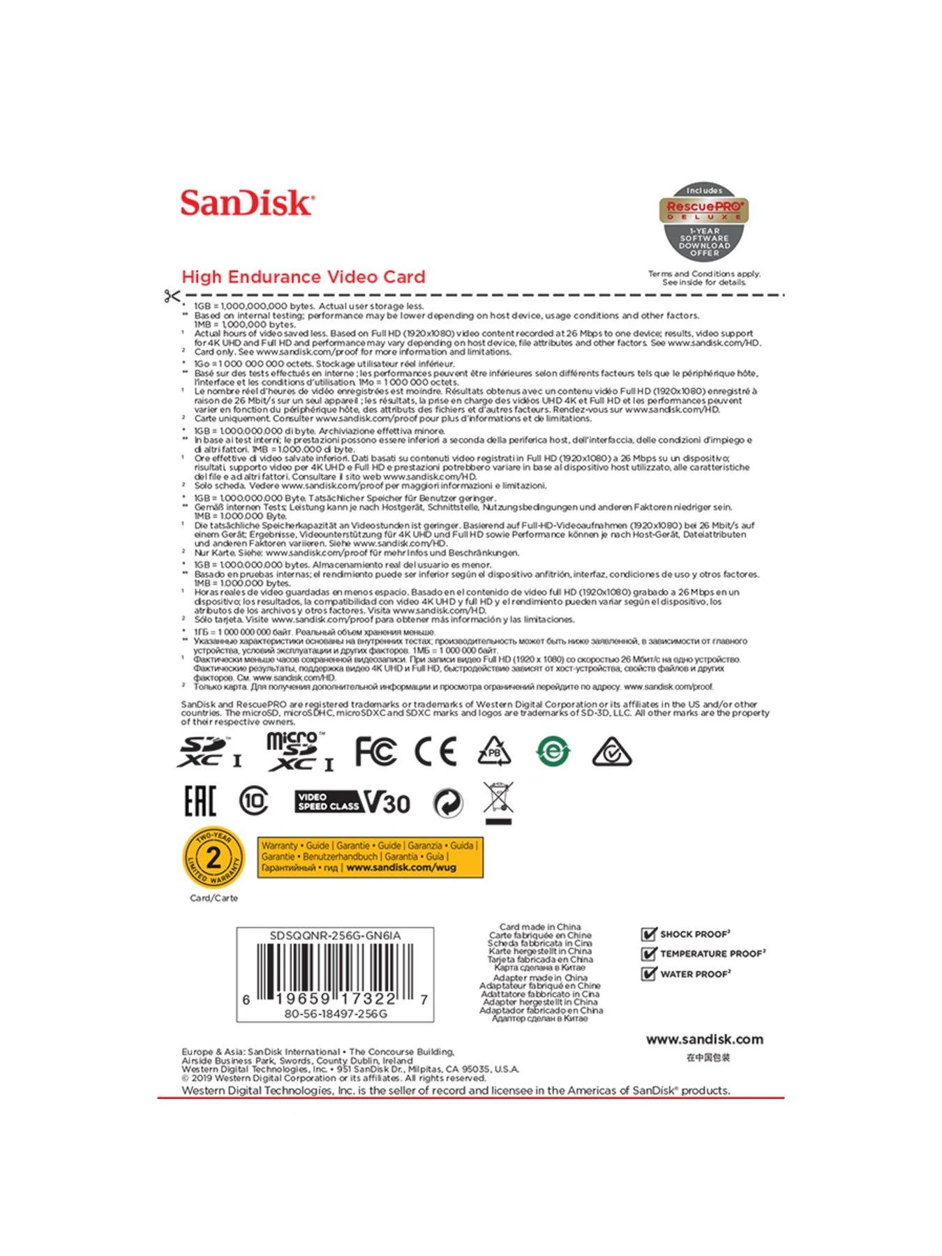 Designed to last, the SanDisk High Endurance microSD card gives you the peace of mind that your dash cam, home monitoring or security system will capture crucial footage when it happens, recording and re-recording worry-free. With capacities of up to 256GB, you can record and save more Full HD or 4K videos. It’s built tough too, ready to record in extreme heat or freezing cold, and it’s shockproof, waterproof and x-ray proof.