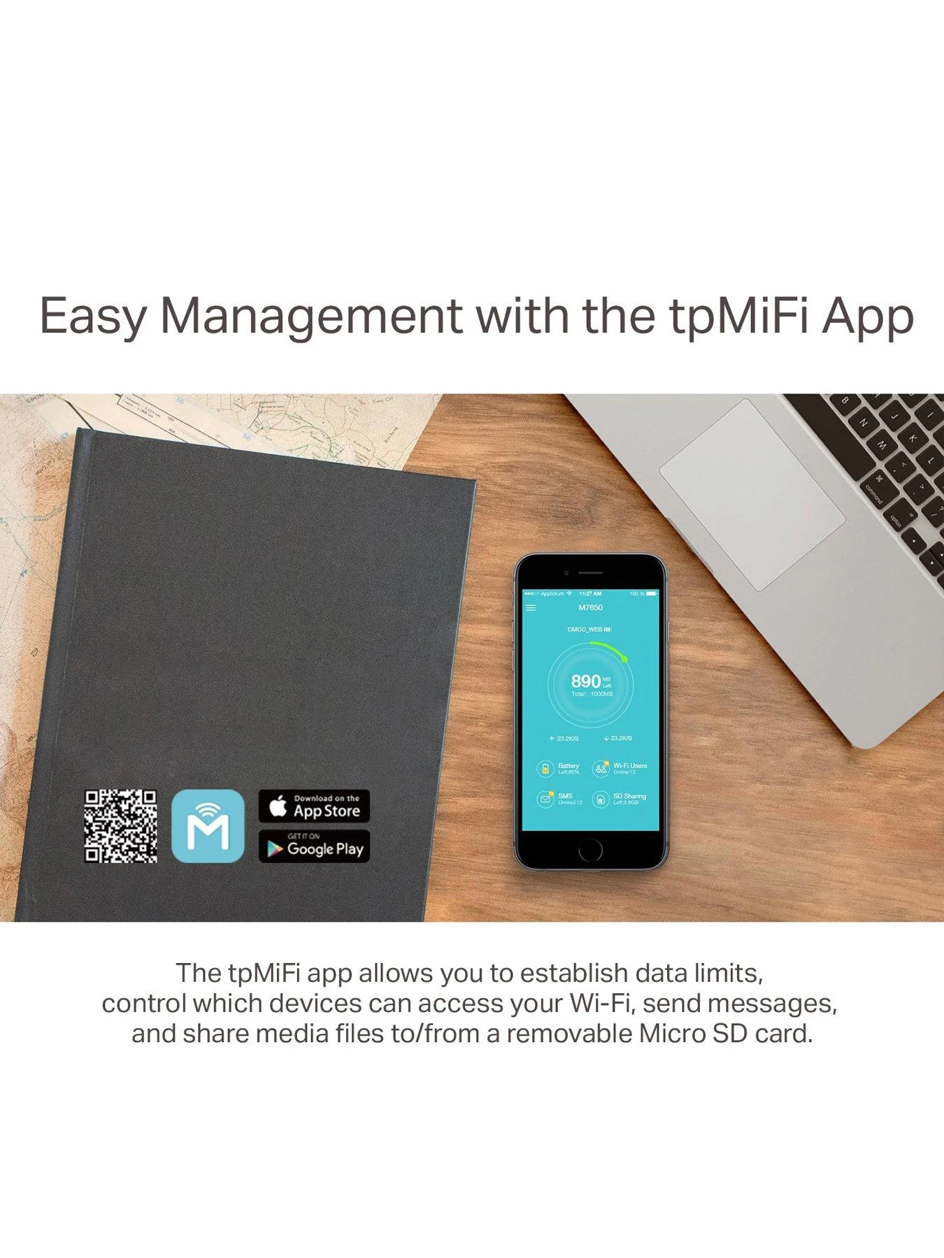 Just insert a 4G SIM card into the device to instantly establish a selectable dual band Wi-Fi hotspot. Equipped with a micro SD card slot too for up to 32Gb of optional storage TP-Link’s M7350 is at the forefront of wireless 4G sharing.