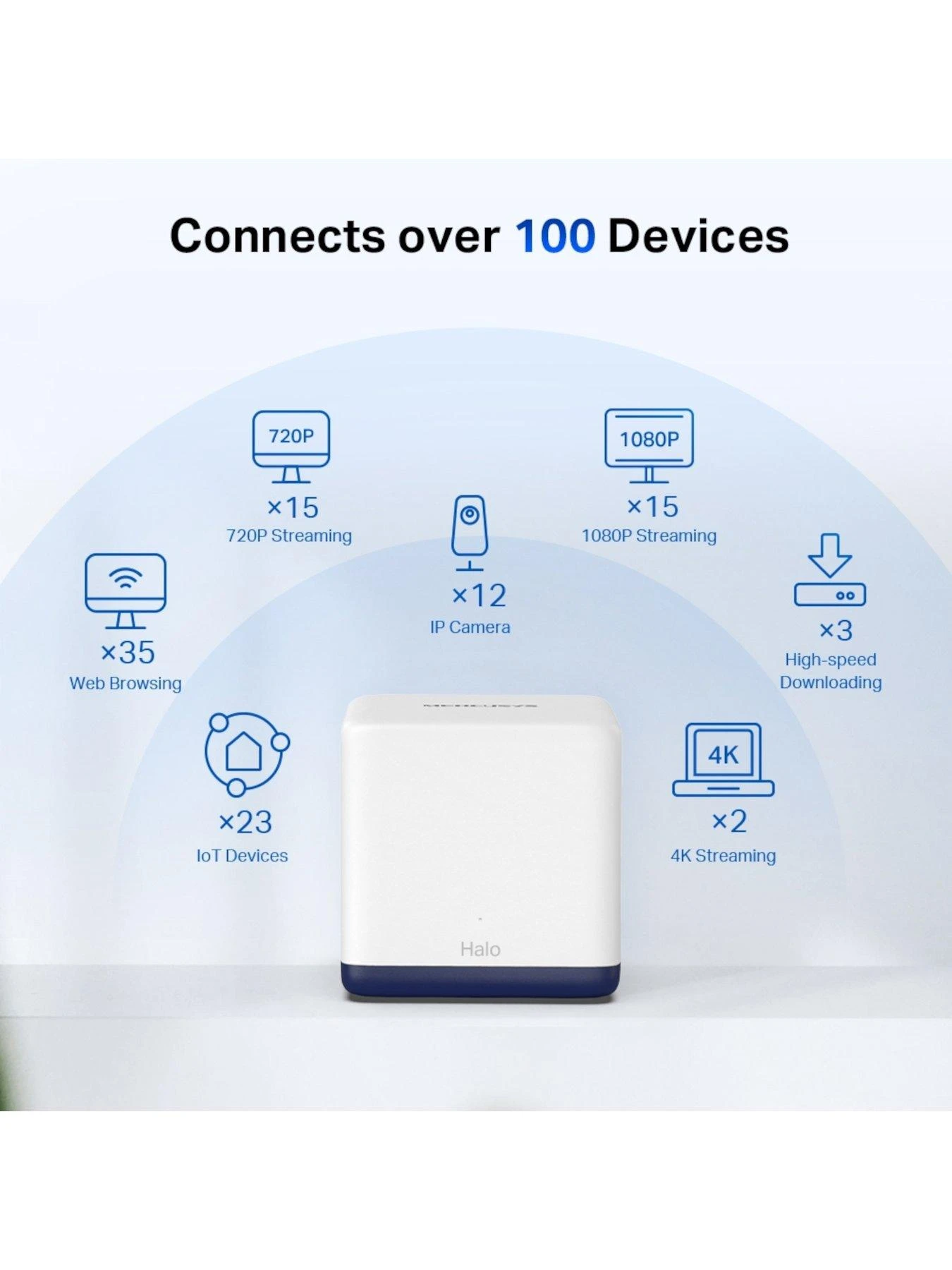 - 1.9 Gbps Dual Band WiFi – Halo H50G provides fast and stable connections for over 100 devices with speeds of up to 1,900 Mbps