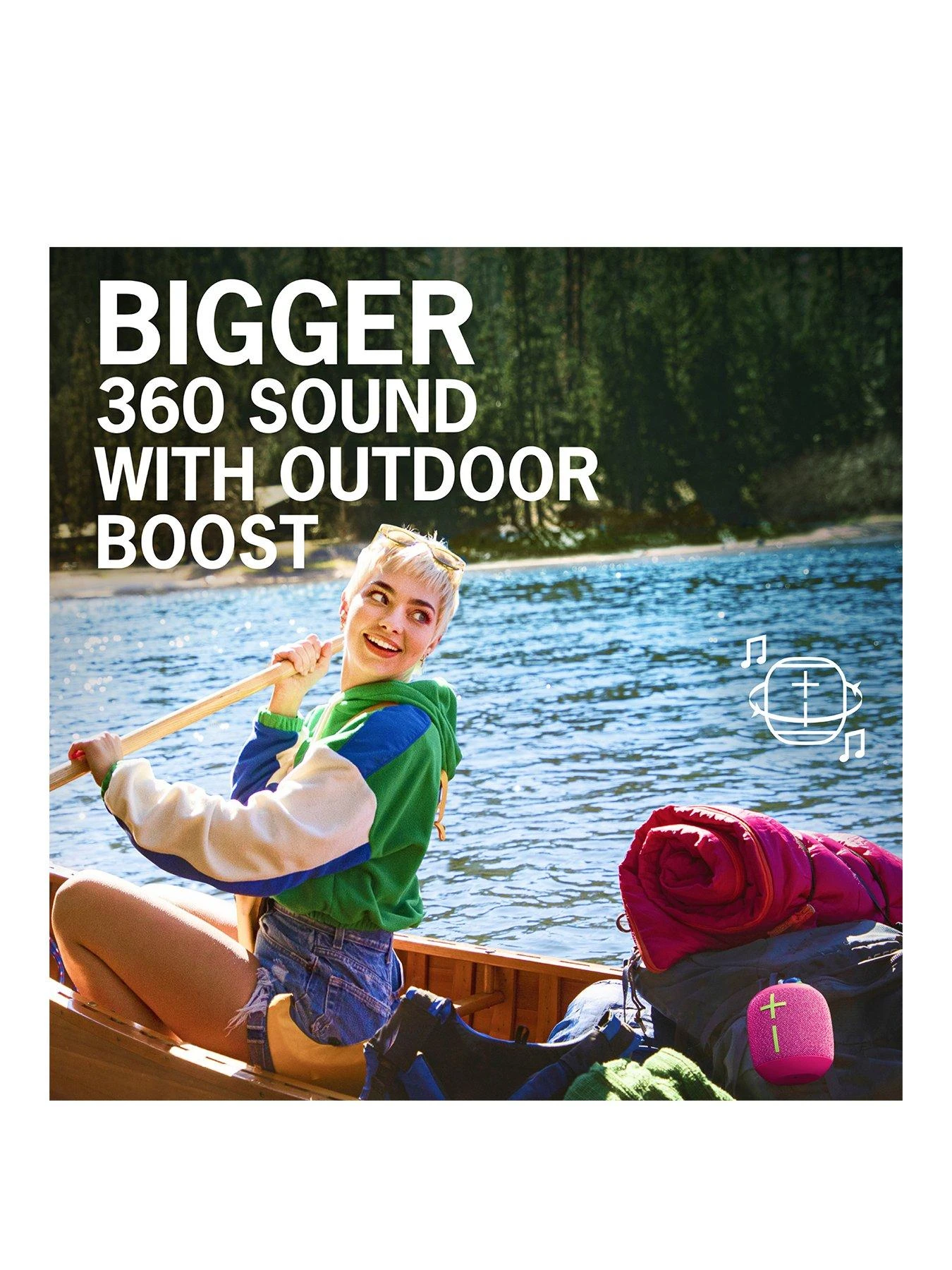 - Booming bass, bigger 360-degree sound: Tap the Outdoor Boost button to get great sound that’s specially tuned for outdoor environments