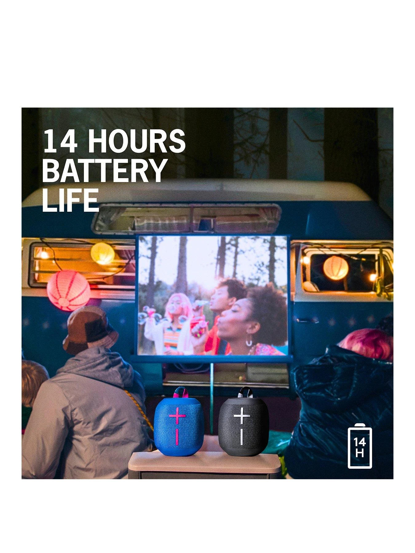 - 14 hours of boom: Forget the charger – WONDERBOOM 3 rechargeable portable Bluetooth speaker bangs longer with 14 hours of battery life.